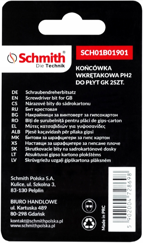 Бит -наконечник для панелей G/K с PH2 ограничителю тевтонские рыцари, установленные 2 шмит Schmith
