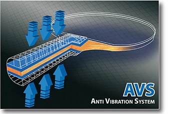 AVS (антивибрационная система) — система подавления вибрации улучшает контроль мяча и снижает вибрации, вызванные ударом по мячу. Это происходит благодаря двум специальным мягким прокладкам между слоями фанеры. Эффектом AVS является более высокая точность ударов в наступательном и оборонительном стилях игры.