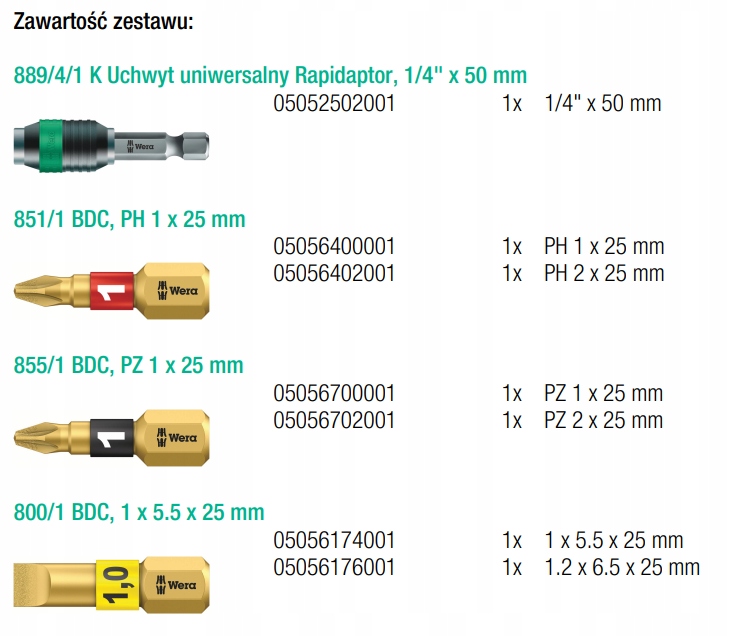 Наконечники с рабочей частью, покрытой мелкими алмазными частицами, гарантируют надежную посадку инструмента, снижая необходимое давление при монтаже и снижая риск выскальзывания из гнезда винта. Наконечники BiTorsion с зоной кручения, поглощающей кинетическую энергию пиковых нагрузок, исключают перекручивание наконечника при высоких нагрузках, что еще больше увеличивает срок службы инструмента. Технология Rapidaptor позволяет прикреплять насадку без перемещения стопорного кольца, а насадку можно быстро заменить, переместив кольцо вперед, что позволяет работать одной рукой. Эти инструменты предназначены для установки в отвертки или электронные сверлильные патроны. Набор отличается малым весом и высокой компактностью в многокомпонентной кассете. Мягкий материал нижней части кассеты обеспечивает надежное крепление и легкое извлечение инструментов. Быстрое распознавание профиля и размера инструментов возможно благодаря системе поиска инструментов «Take it easy» с цветовой идентификацией и четкой маркировкой.