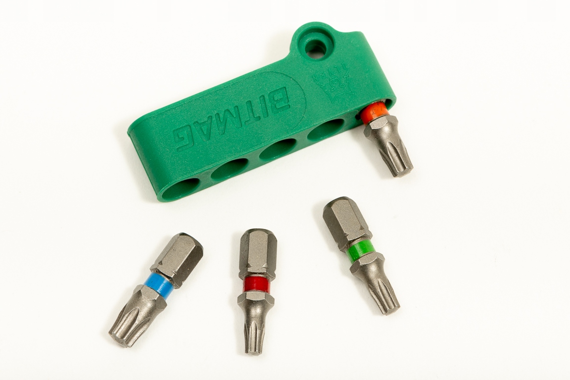 - НЕ ТОЛЬКО ДЛЯ БИТ. Bitmag™ был разработан в основном для решения проблемы неудобного и трудоемкого обмена короткими битами, и здесь он непобедим и не имеет себе равных. Однако его с успехом можно использовать для длинных бит, удлинителей, дрелей и т. д. Магниты настолько сильны, что даже более тяжелые вещи обычно не выпадают.