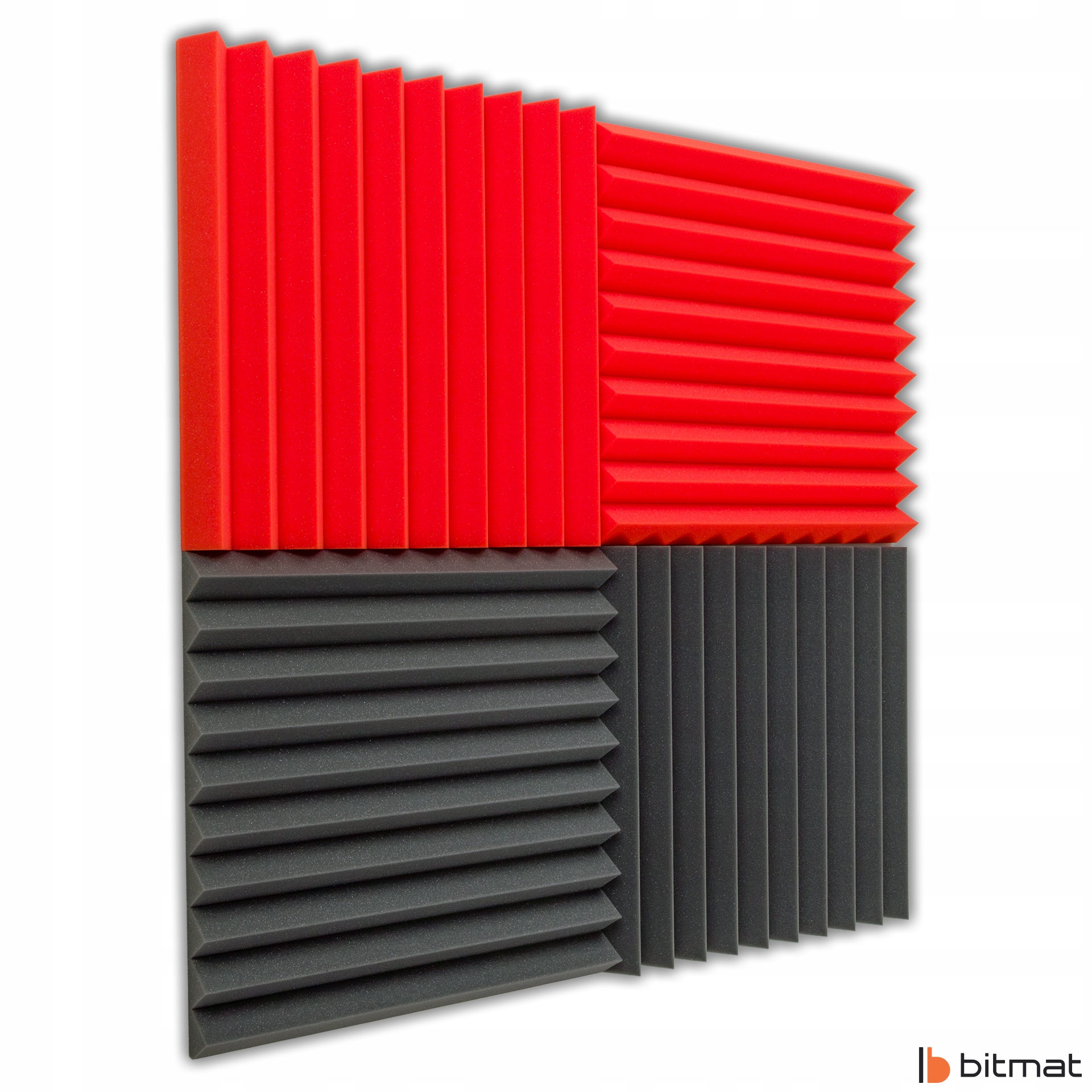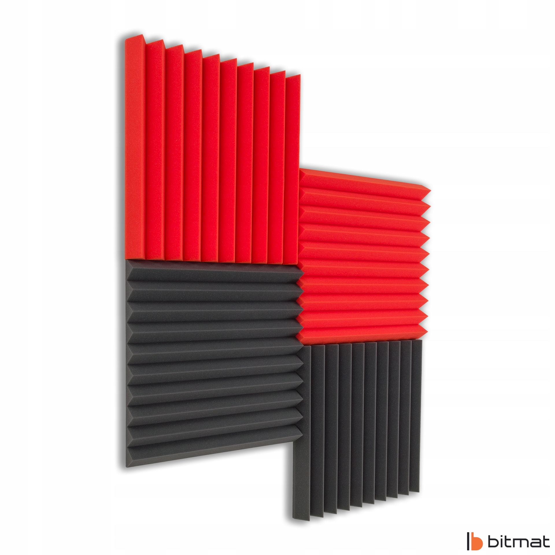 Акустическая клиновая пена Bitmat, также называемая акустической панелью, изготовлена из вспененного полиуретана и имеет структуру с открытыми порами. Использование соответствующего материала идеально подходит для студий и музыкальных комнат/учебных кабинетов, поскольку улучшает разборчивость речи и вокала. Это оптимальное приложение, которое при относительно небольших затратах позволяет предотвратить реверберацию, улучшить качество звука в жилых и рабочих помещениях, создать современный дизайн.