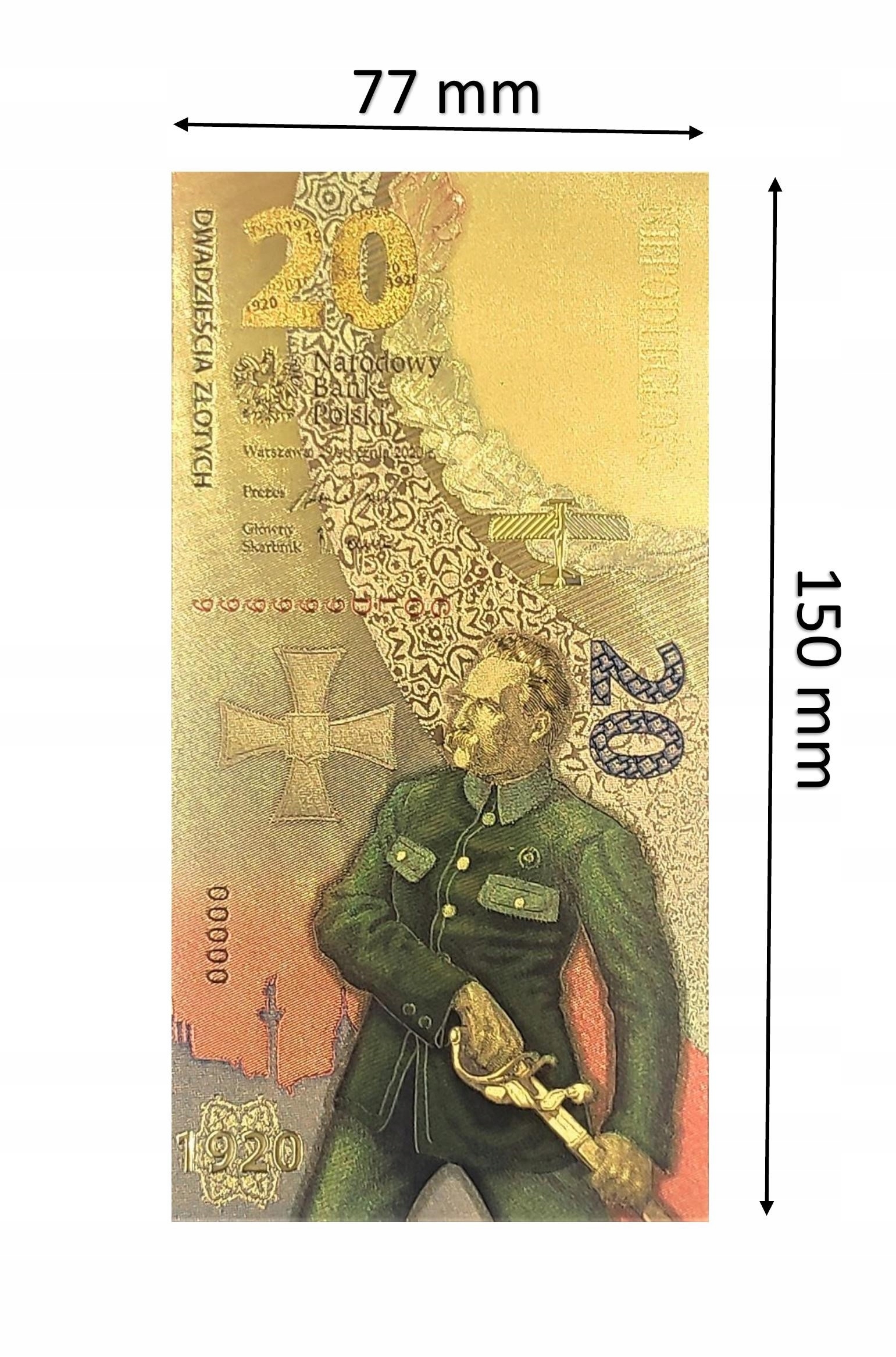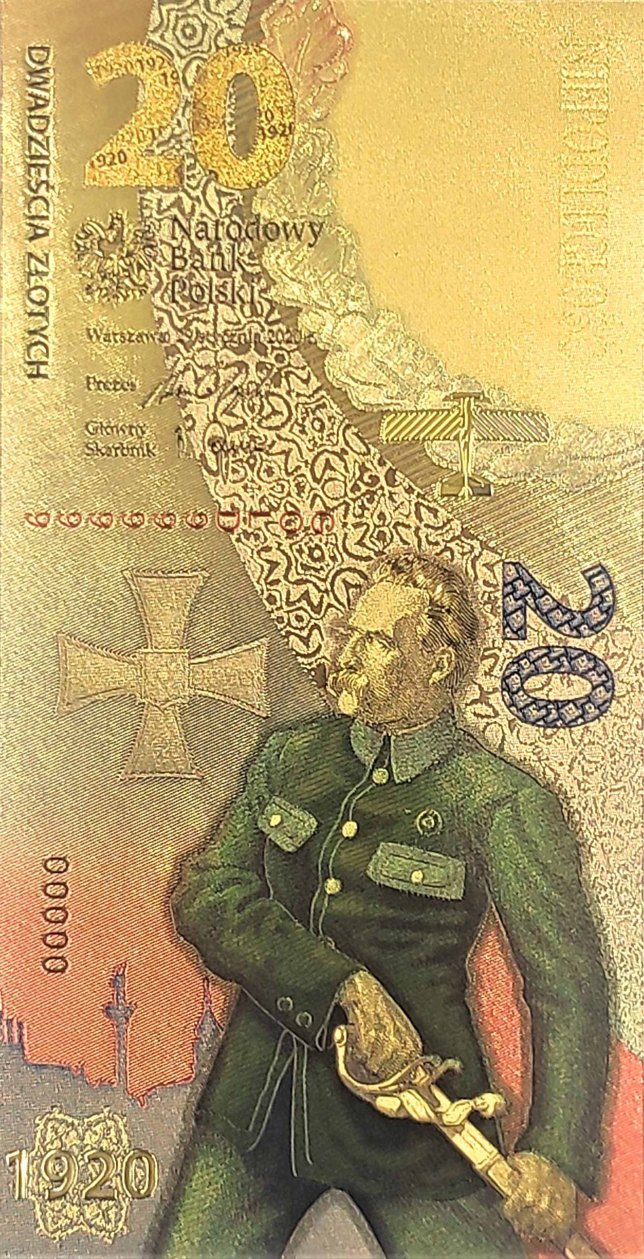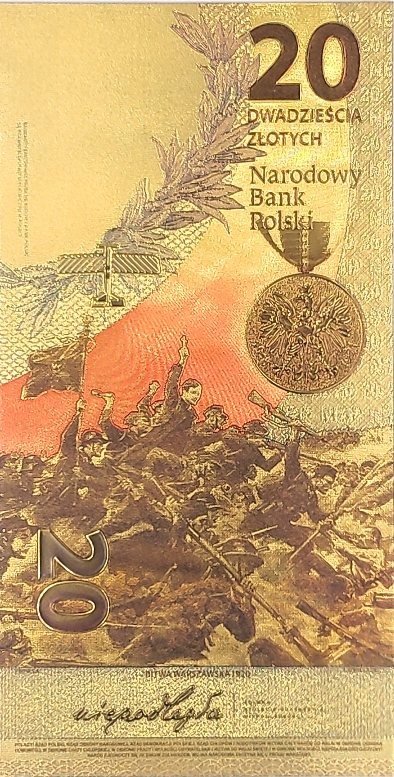 Позолоченная банкнота номиналом 20 злотых «Варшавская битва»