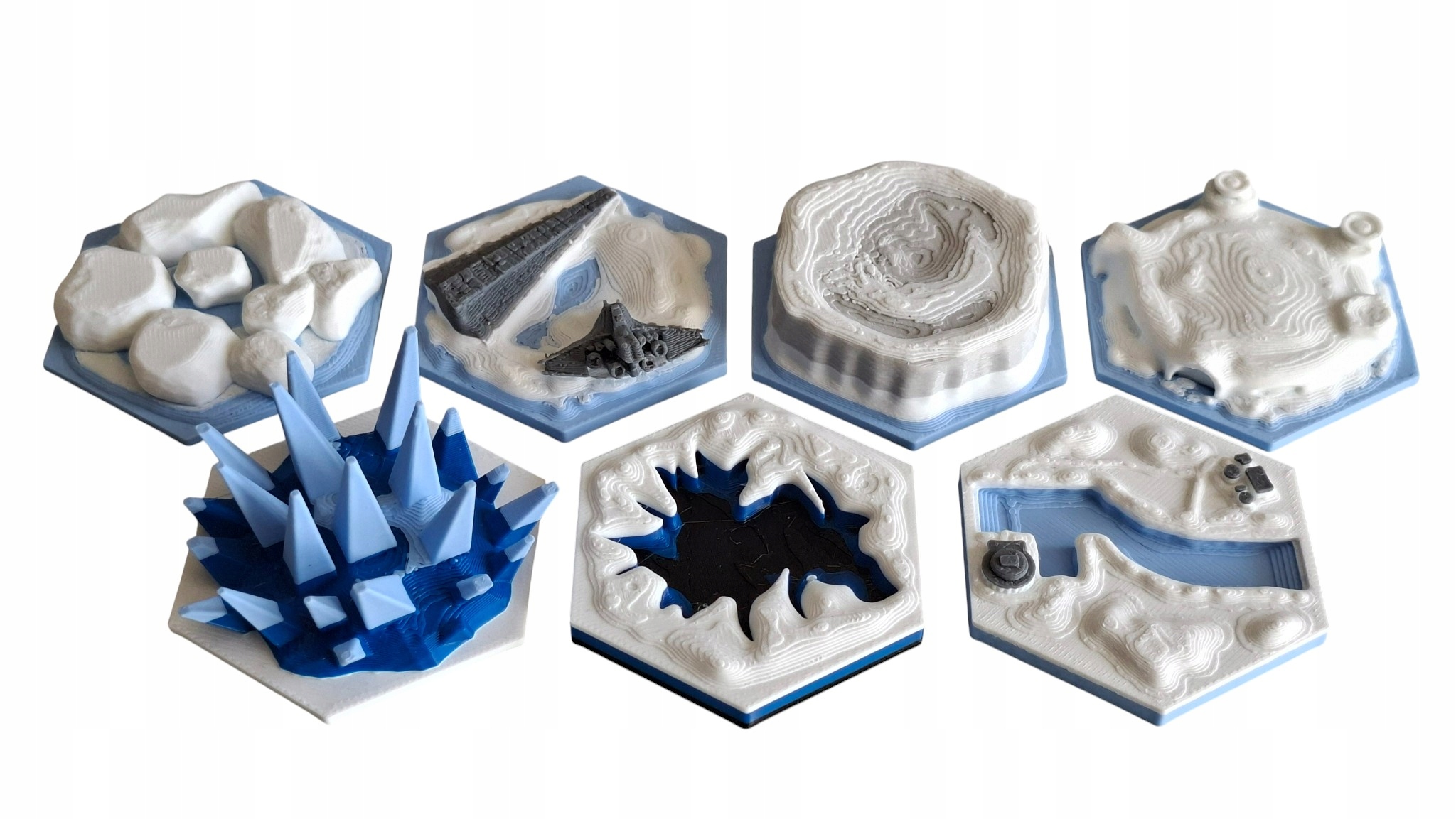 Я предлагаю распечатку 3D -элементов, соответствующих битве на настольную игру за Хот. 3D -элементы могут быть использованы взаимозаменяемо вместо картонных гексов, чтобы украсить игру и увеличить погружение во время игр.