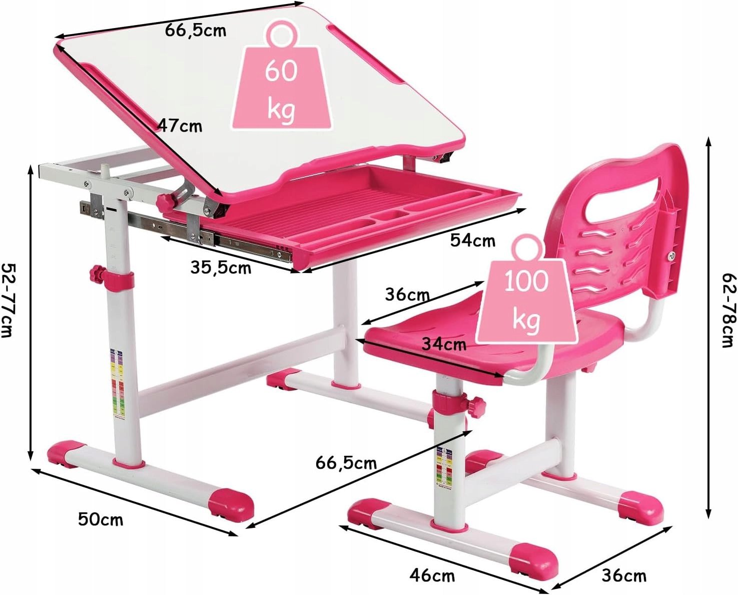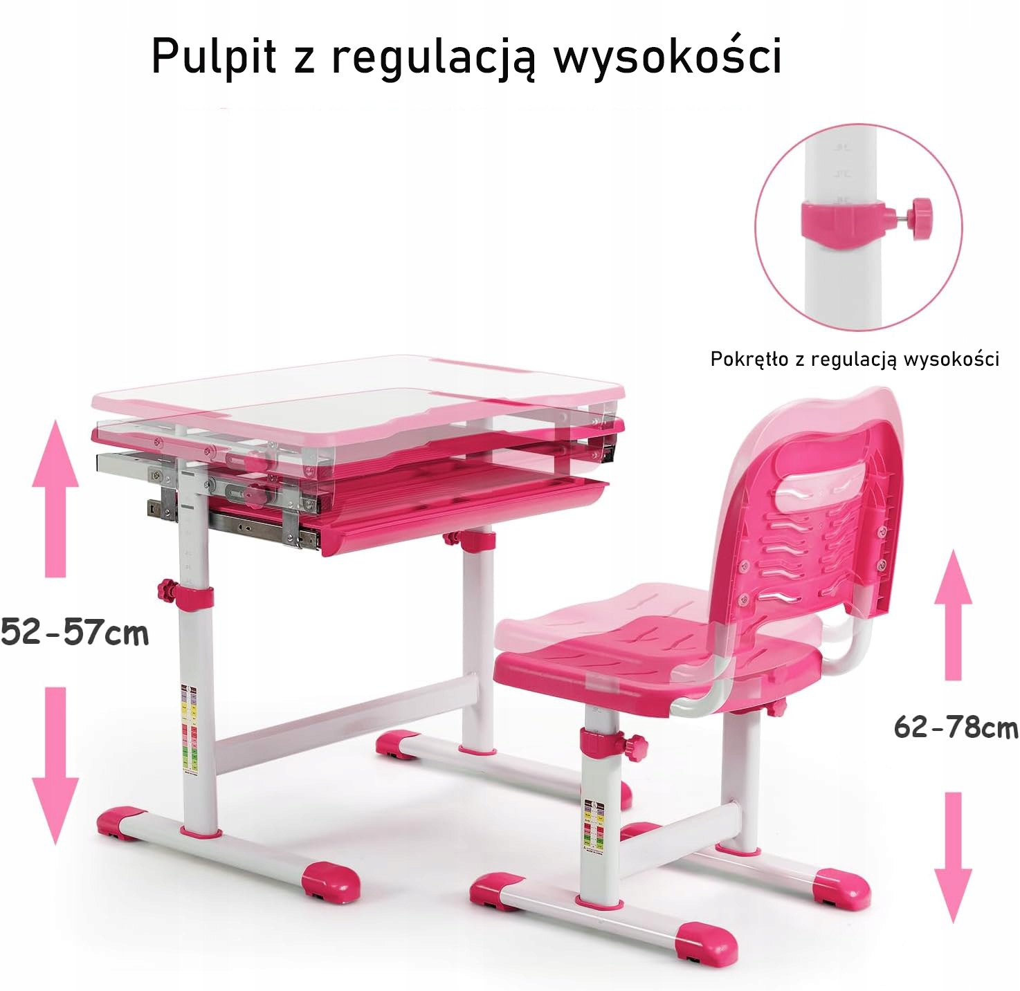 Biurko dziecięce z regulacją wysokości z krzesłem od 4 lat (Różowy)