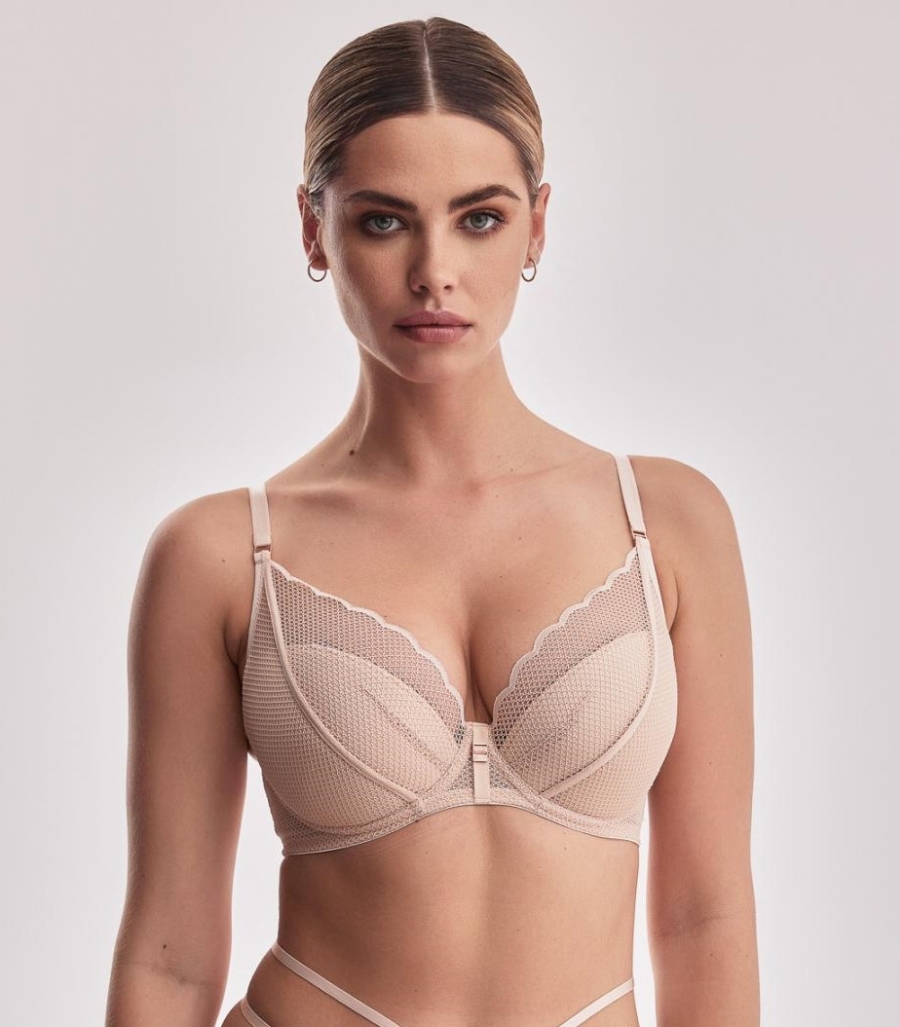 Chita P-Up создаст для вас полное декольте. Этот бюстгальтер телесного цвета украшен металлической фурнитурой золотого цвета, а современное кружево имеет отделку, соблазнительно подчеркивающую женственные формы.