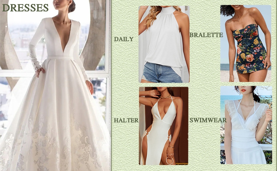 Широкое применение: идеально подходит для платьев с открытой спиной и без бретелек, футболок, топов на бретелях, свадебных платьев, спортивных бюстгальтеров и купальников. Ремешок бюстгальтера, подходящий для чашек AE, поднимет и придаст желаемую форму даже самой тяжелой груди.