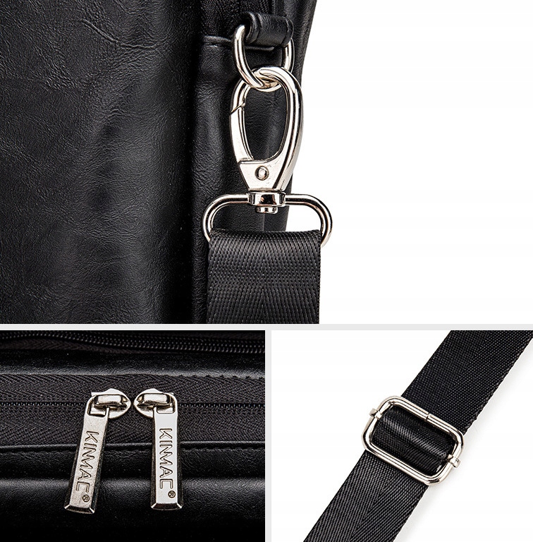 Сумка для ноутбука Kinmac изготовлена из водонепроницаемой и простой чистки Eco -leather . В сумке есть три камеры, закрепленные на молнии. Первая камера - это карман с организатором для аксессуаров. Вторая (средняя) камера представляет собой карман ноутбука размером до 15,6 ", облицованная очень мягким плюшевым материалом, который также имеет специальные вкладки , направленные на повышение безопасности переносимого оборудования . Третья камера предназначена для упаковки более крупных вещей, складок или документов. На обратной стороне пакета есть пояс для поставки.