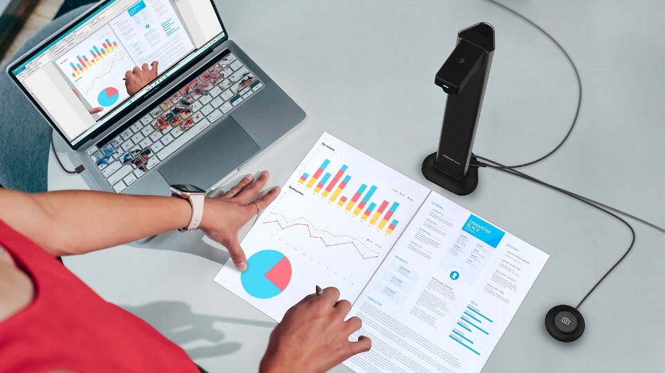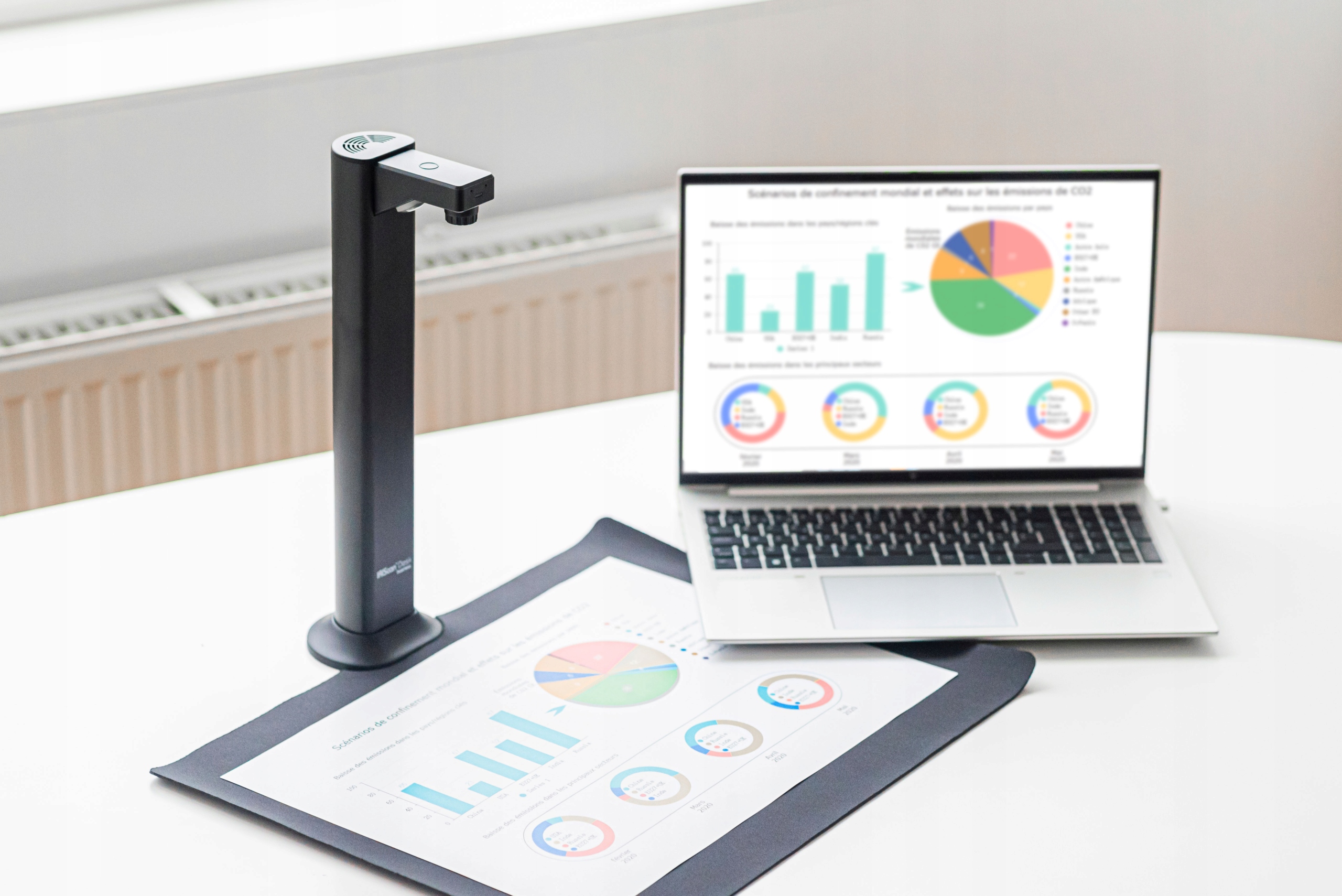 - 24 MP CMOS и поле для A3: четкое сканирование контрактов, книг и планов в качеством офиса, с шириной кадра до 44 см. в более слабом свете (требует питания).