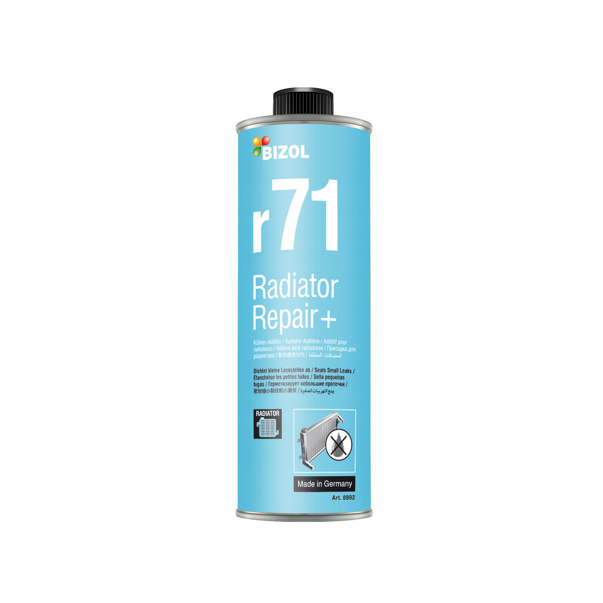BIZOL Radiator Repair + r71 сделано в Немецкая присадка для радиаторов, предназначенная для герметизации микротрещин в радиаторной системе и уплотнителях. Микротрещины и неплотности в системе радиатора приводят к потере охлаждающей жидкости. Это приводит к потере эффективности системы охлаждения и обогрева и вызывает повреждение двигателя. BIZOL Radiator Repair+r71 содержит специально разработанные полимеры, которые надежно герметизируют систему охлаждения. Эти полимеры не засоряют каналы радиатора или линии охлаждающей жидкости. Отопитель быстро восстанавливает правильную работу. Этот продукт представляет собой готовую к использованию суспензию для всех систем охлаждения и отопления с водяными фильтрами и без них. Также подходит для алюминиевых и пластиковых радиаторов.