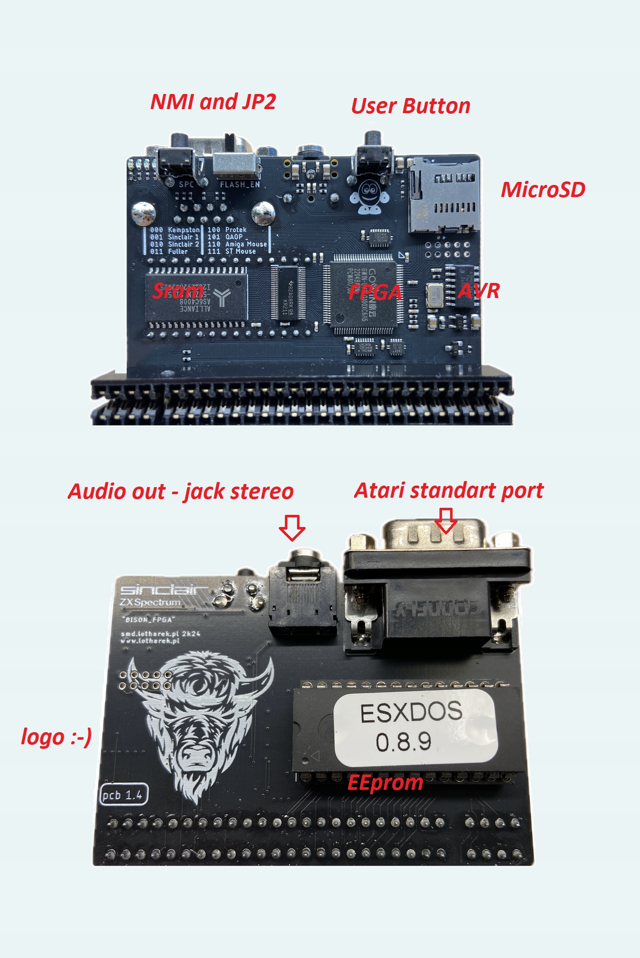 - Функция Soft +3E: BISON может загружать образы ПЗУ +3E с SD-карты, устанавливать их как системное ПЗУ (используя его собственную оперативную память) и сделайте их доступными для компьютера, отключив функцию автоматического сопоставления (требуется для ESXDOS, но не для +3eDOS). Это эффективно позволяет пользователю использовать машину +2A/B/3 как машину +2e/3e, без необходимости открывать корпус и менять ПЗУ. Новая команда с точкой «.go3e» делает это возможным. Такая команда работает только с DivTIESUS и BISON.