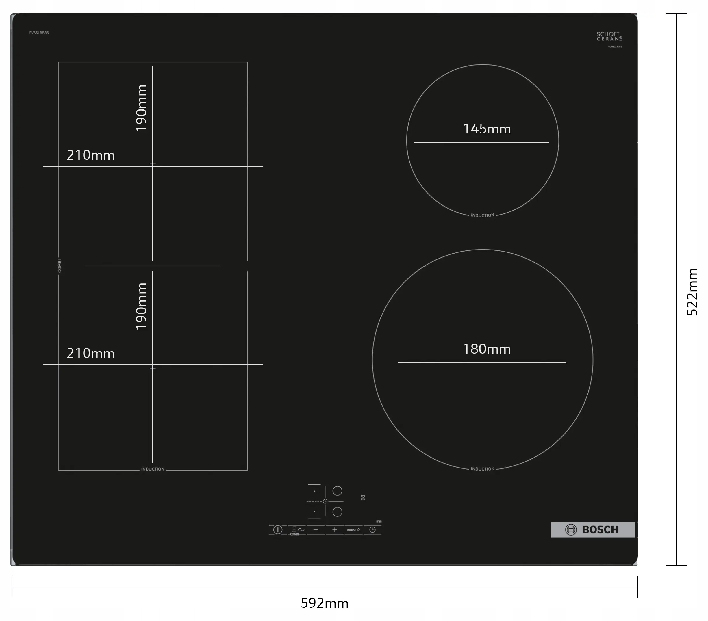 - Bosch Pvs61rbb5e Индукция HOB | Подключенные поля, мощность 6900 Вт, функция PowerBoost