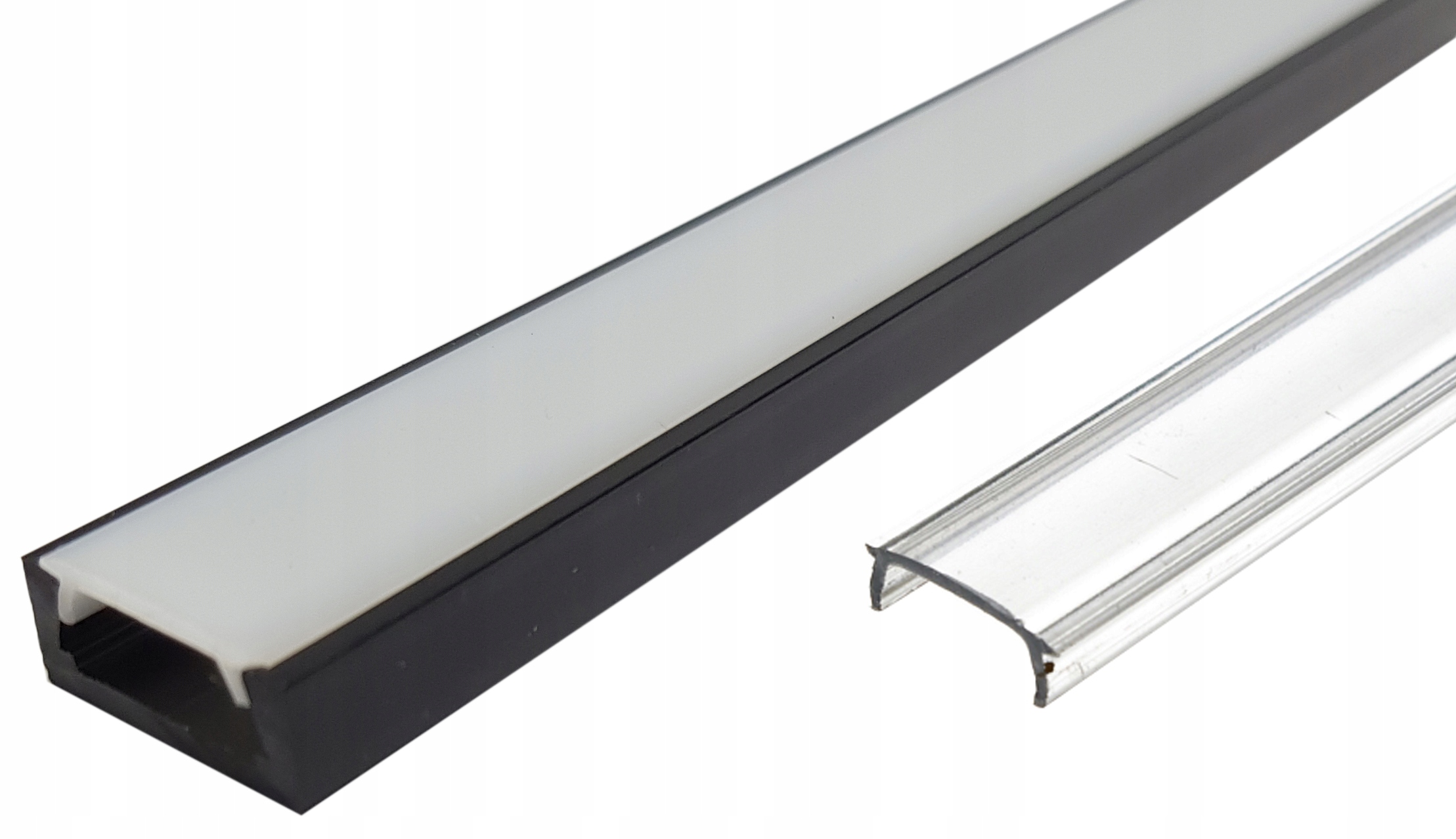 Комплект ЧЕРНОГО ПВХ-ПРОФИЛЯ 2 МБ типа А ПОВЕРХНОСТЬ с диффузором CLICK МОЛОЧНОГО или ПРОЗРАЧНОГО цвета на выбор