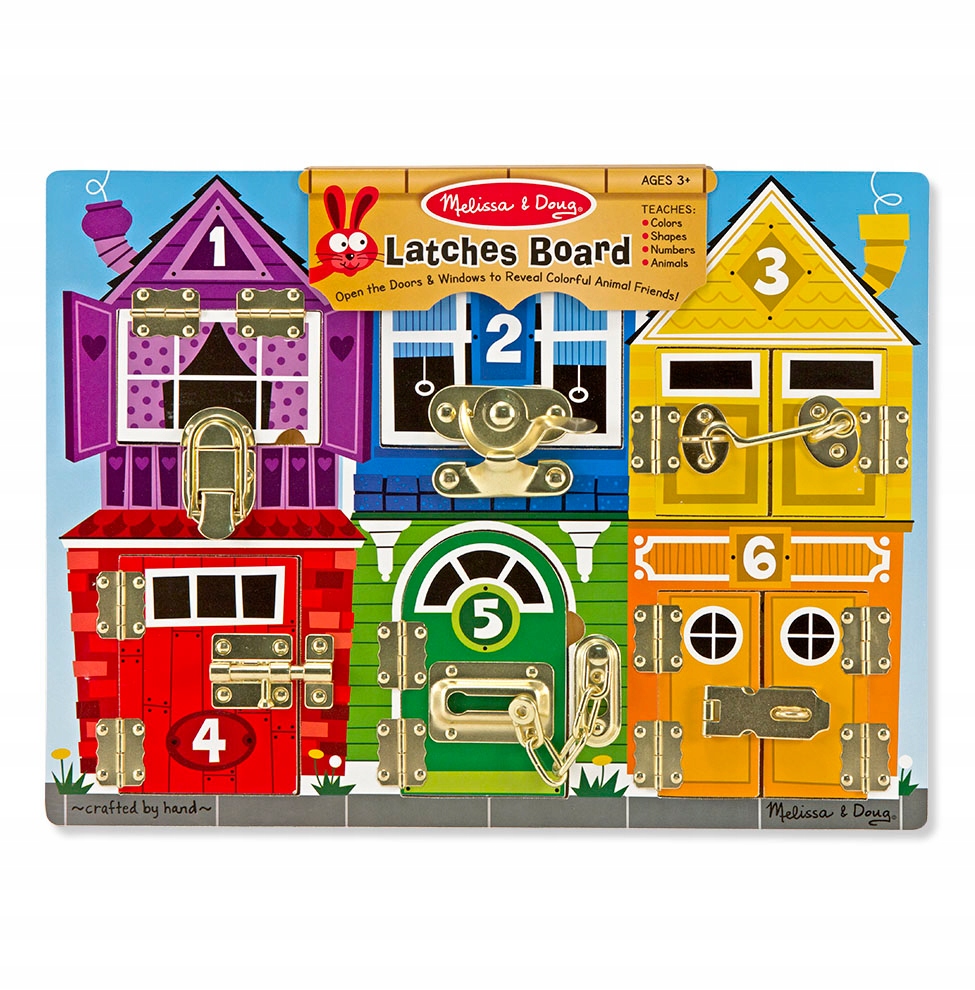 Эта игрушка — одновременно головоломка и обучение. Малыш получает доску с шестью типами замков.