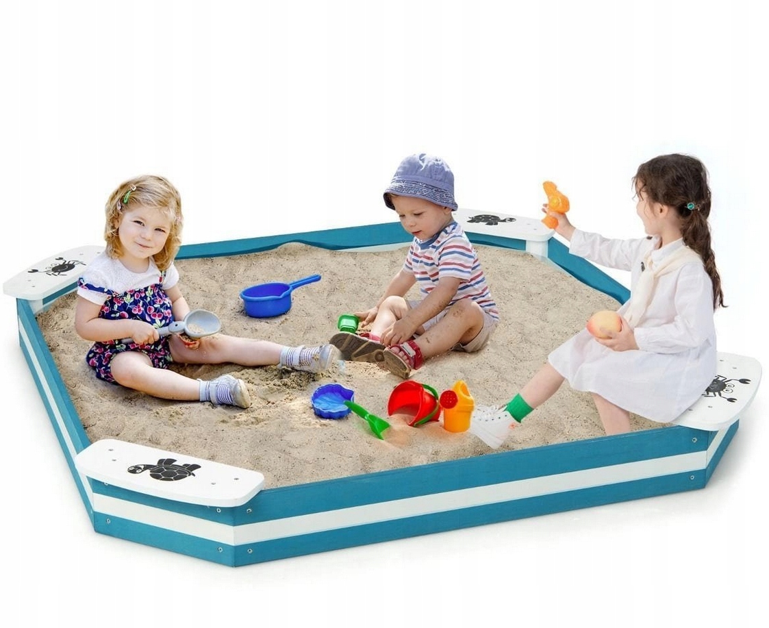 4 привлекательных встроенных сиденья: Эта деревянная песочница имеет 4 встроенных сиденья, каждое из которых вмещает до 33 детей. кг. Очаровательные рисунки черепах и пауков наверняка понравятся детям.