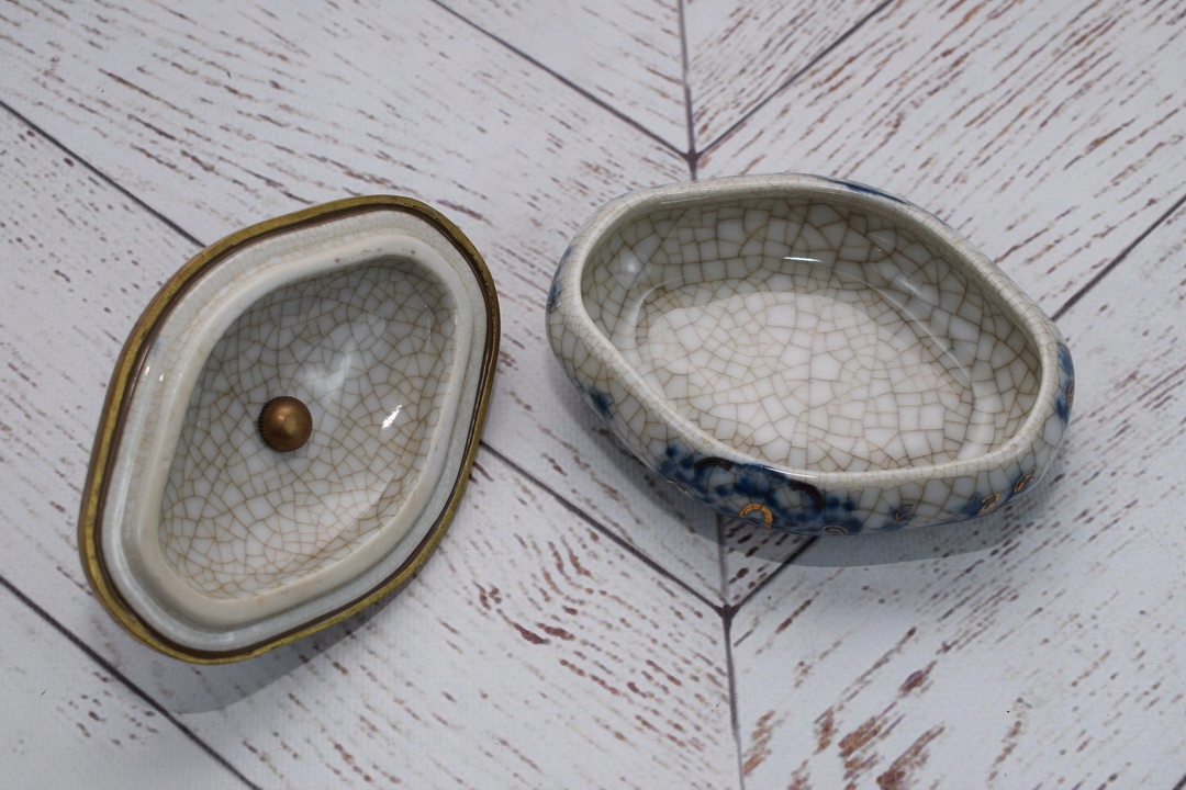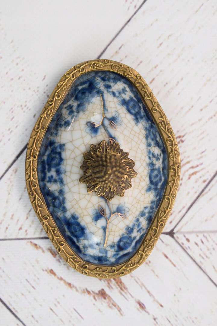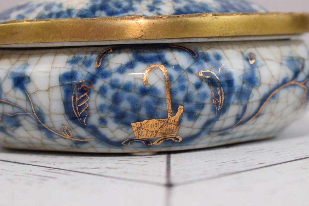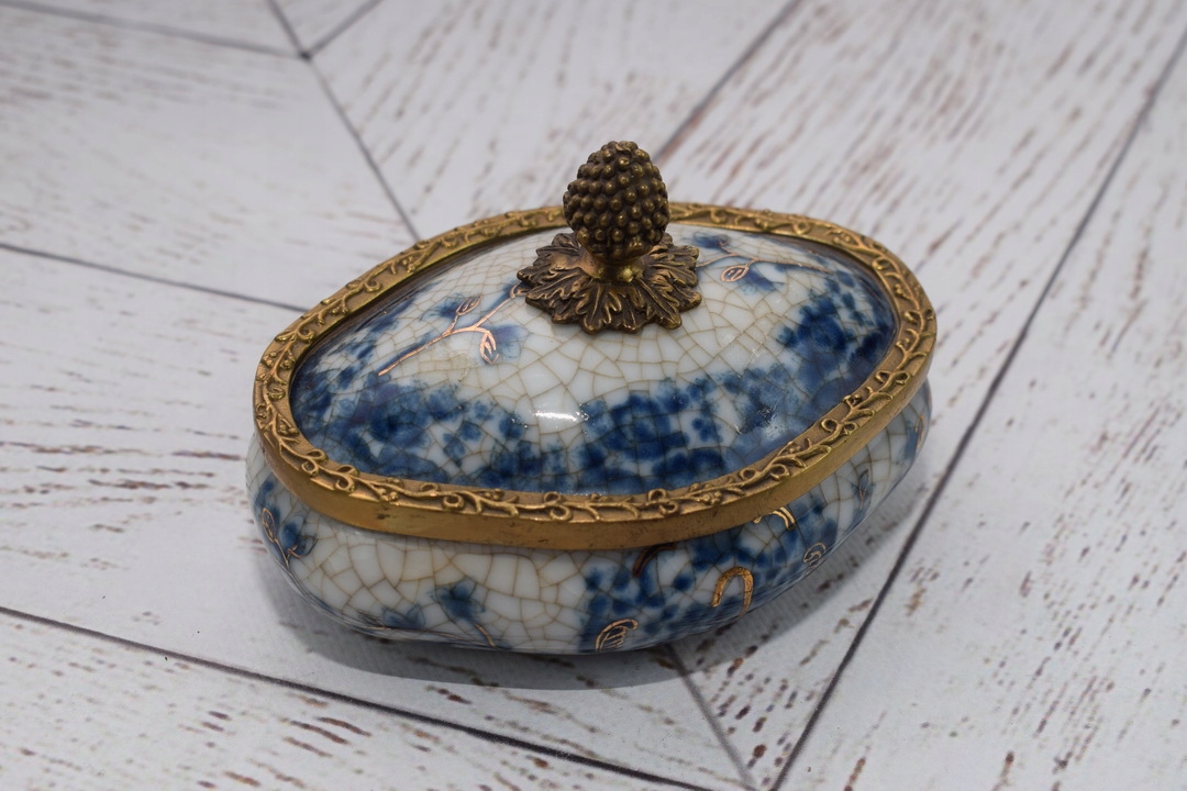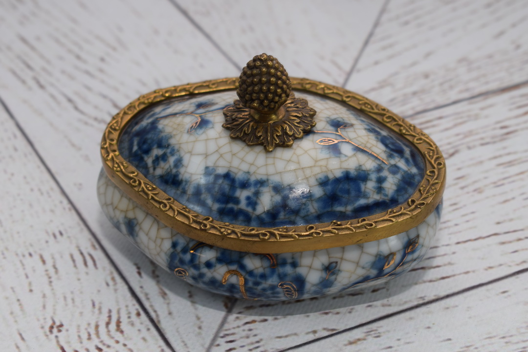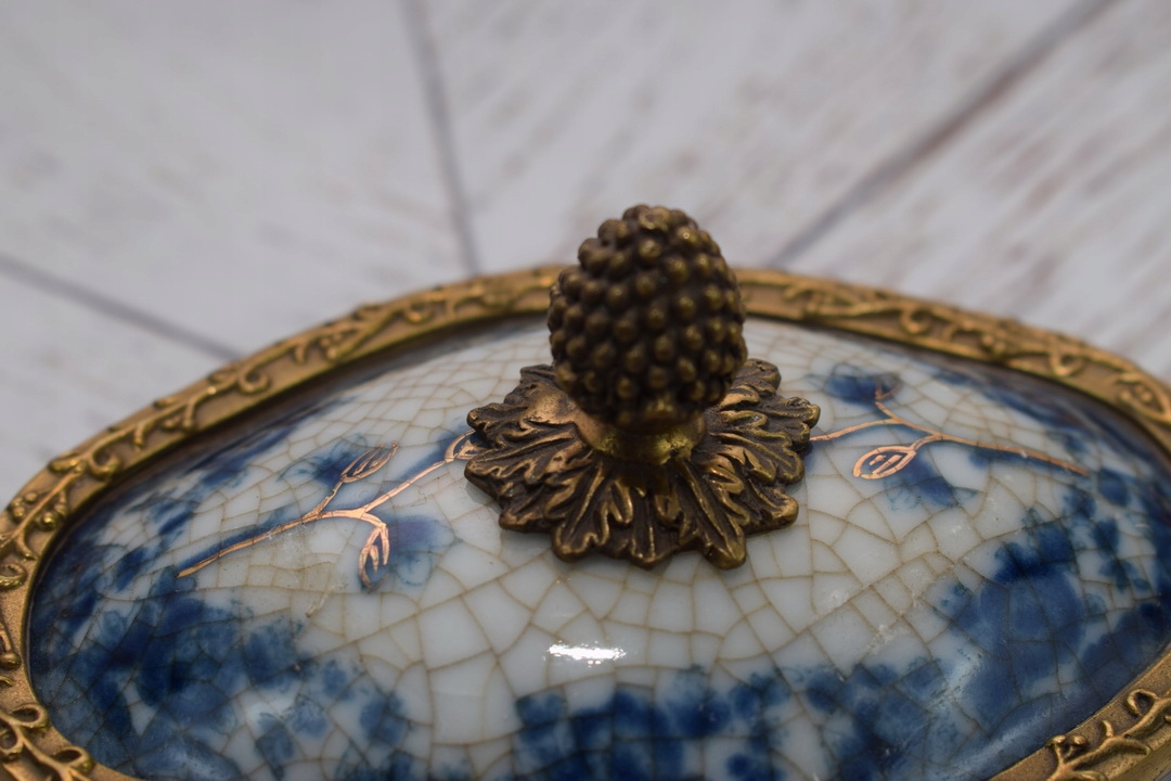 Синяя фарфоровая шкатулка - Коробка - Цветы - Фирменная бронзовая фурнитура