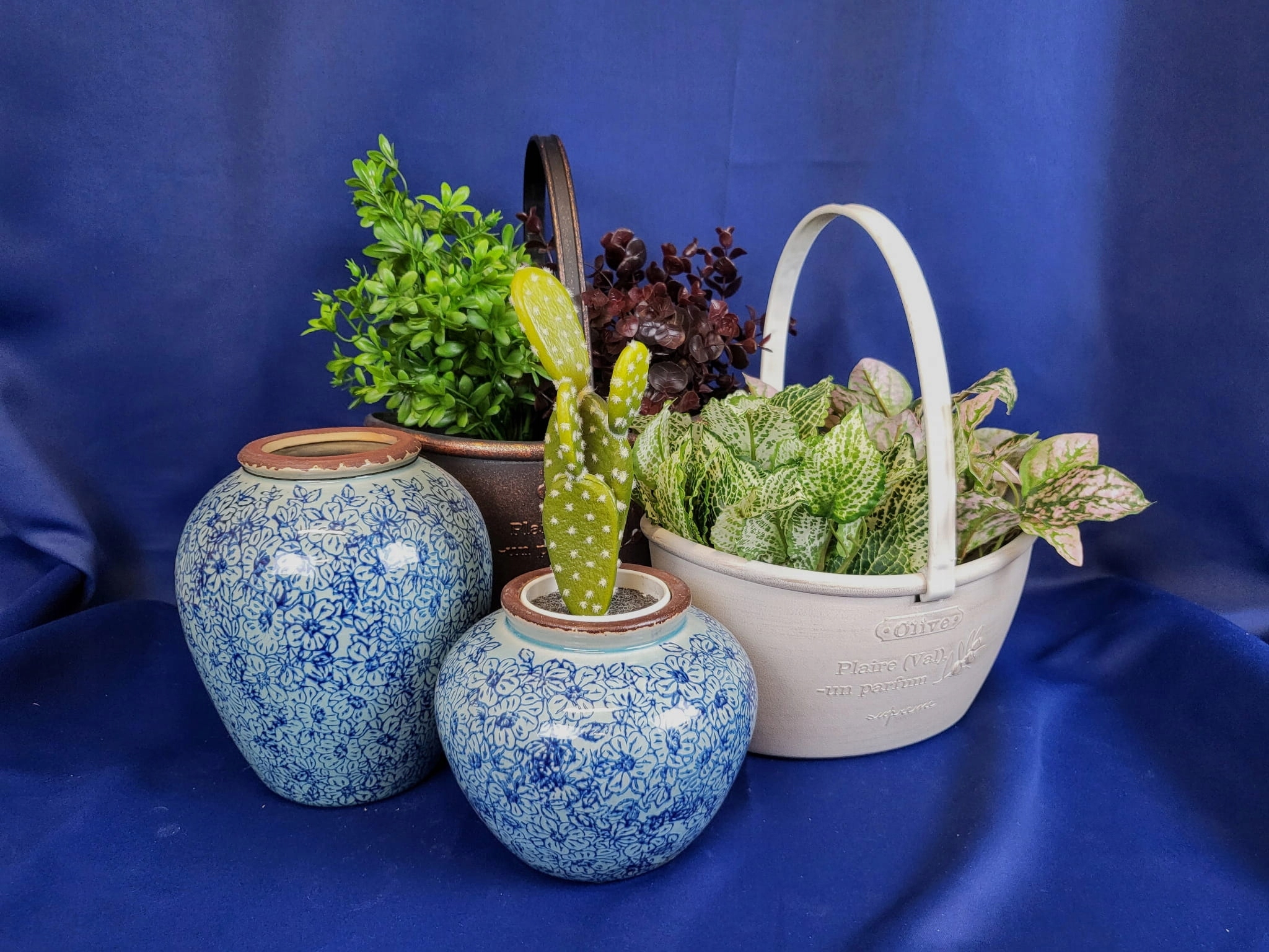 БЛАКИТНА ВАЗА З КВІТАМИ 15 СМ