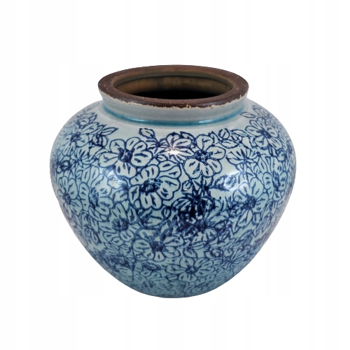 Керамическая ваза синего цвета с цветочным узором. Он прекрасно впишется в деревенский, провансальский, морской или эклектичный интерьер.