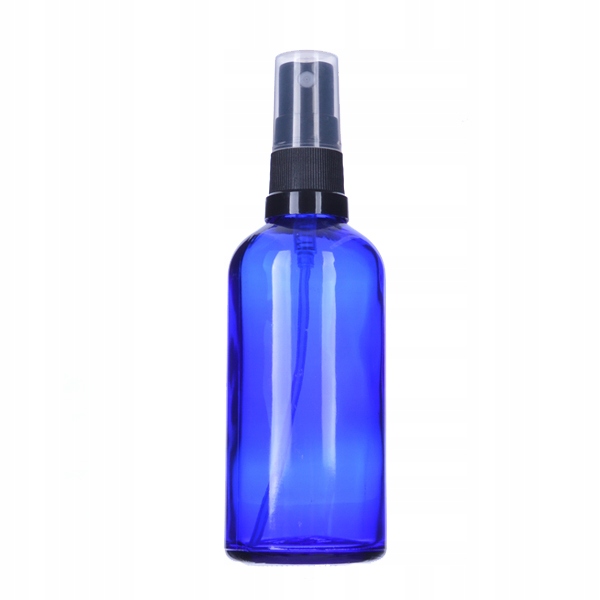 Прочный синий флакон емкостью 100 мл с распылителем. Толстое стекло защищает содержимое флакона от солнечных лучей.