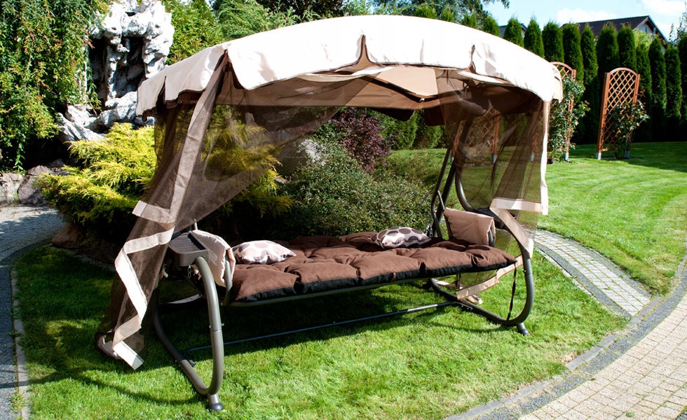 Садовые качели BLANCA — идеальное предложение для всех, кто мечтает отдохнуть в комфорте своего сада, участка. или терраса. Качели отличаются высоким качеством изготовления и прочной и прочной конструкцией. Для повышения комфорта отдыха наше изделие оснащено регулируемым навесом, защищающим пользователя от солнечных лучей. Качели также имеют функцию сна.