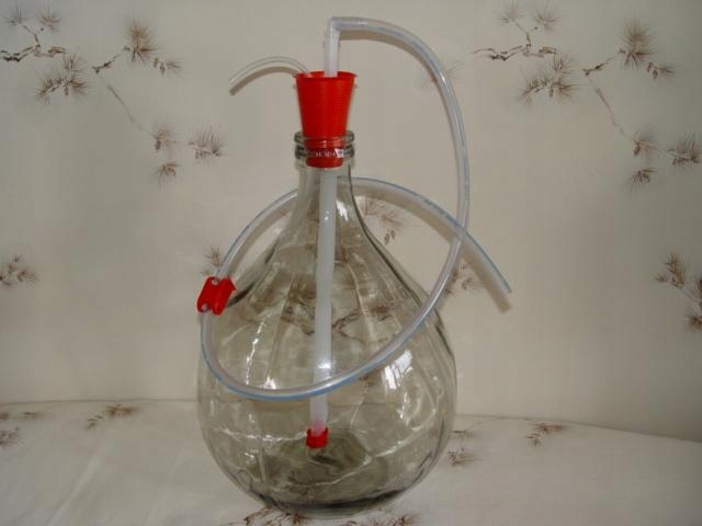 Телескопическая трубка, диапазон от 35 до 60 см, внешняя трубка 106 см, герметичное закрытие баллона, отдельная всасывающая трубка, зажим для отключения оттока и средство для удаления осадка. Фотография сделана в баллоне Ambrosio объемом 10 л со слегка выдвинутой трубкой.