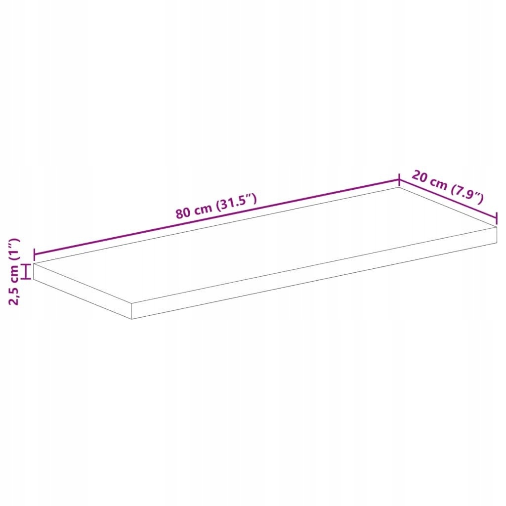 BLAT STOŁU 80X20X2,5CM PROSTOKĄTNY LITE DREWNO Z ODZYSKU