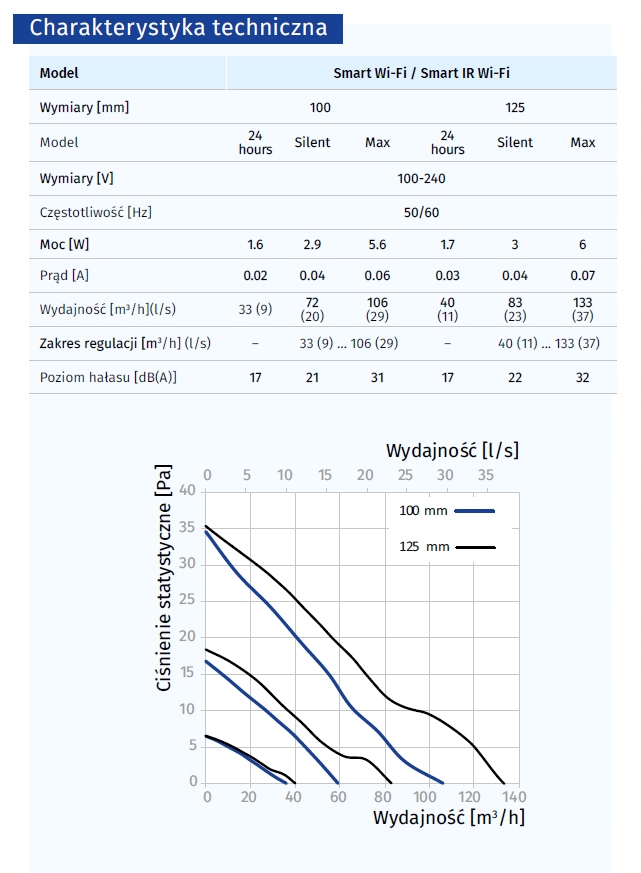 Вентилятор оснащен интегрированной электронной системой , которая позволяет индивидуально использовать параметры, которые обеспечивают идеальный микроклимат в комнате. Высокая производительность (до 133 м3/h ) и тихой работы ( мин. 17 DBACE ~ 3 мн) благодаря использованию специально разработанного двигателя и аэродинамически профилированного ротора (пропеллер). Высокоэффективный DC Engine с низким энергопотреблением - max. до 3,8 в и жизнеспособности до 50 000 часов непрерывной работы . Импульсный источник питания с широким диапазоном питания (от 100 до 240 В/50-60 Гц) обеспечивает нетронутую работу после подключения к различным энергетическим сетям. Автоматическая мощность отключена в случае отказа двигателя. Silent Operation , возникающая в результате специально разработанного варианта двигателя и ротора, встроенного на антиваибрационную площадку. Встроенный -в выключателе щин, который позволяет легко отрезать источник питания. Ультрафлазонный корпус 28 мм толщиной. Свобода сборки вертикально или горизонтально . Конфиденциальный разъем к круглую каналу с диамами. 100 или 125 мм . Легкая разборка двигателя и ротора, не требуя инструментов и обеспечения комфорта обслуживания. Многофункциональная панель управления со светодиодами