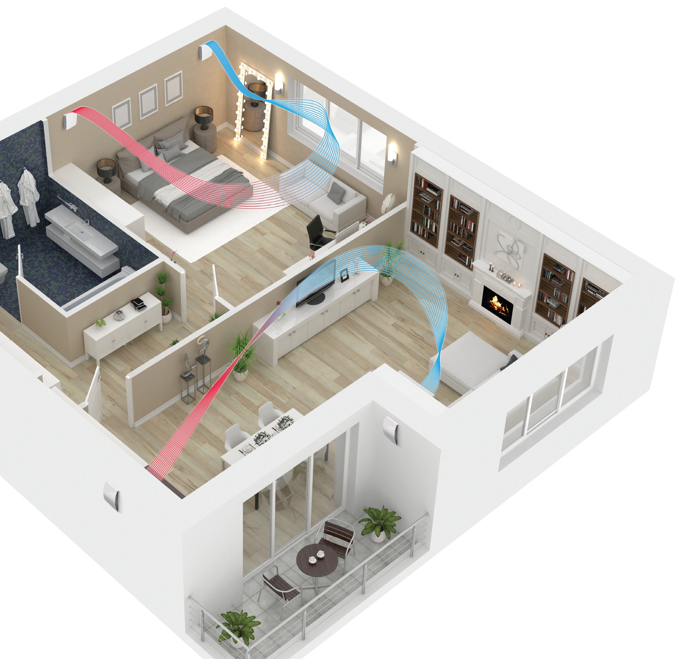 Подает свежий и чистый воздух в помещение 24 часа в сутки. Отсутствие необходимости прокладки сети воздуховодов в децентрализованной системе упрощает установку устройства и не требует высоких эксплуатационных затрат. Специальное мобильное приложение позволяет управлять из любой точки мира.