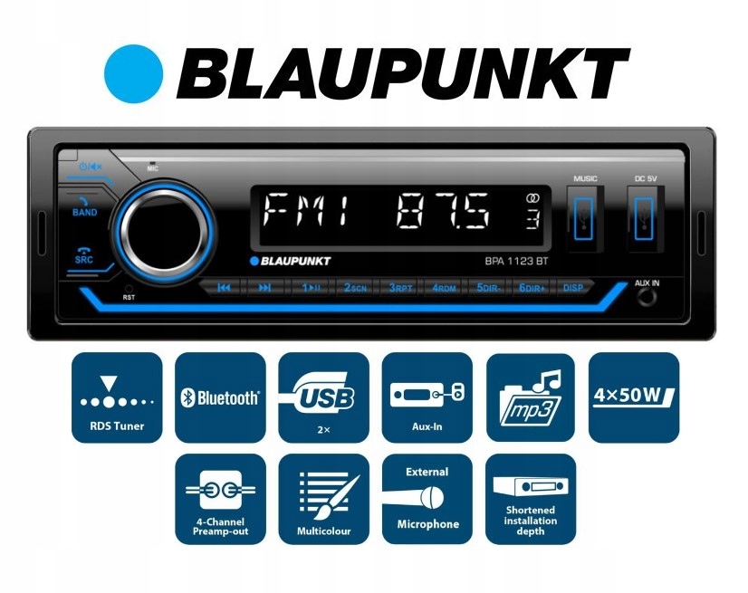 Blaupunkt BPA1123BT CAR Radio 1-DIN BT USB AUX MP3 WMA PROMOON !!!