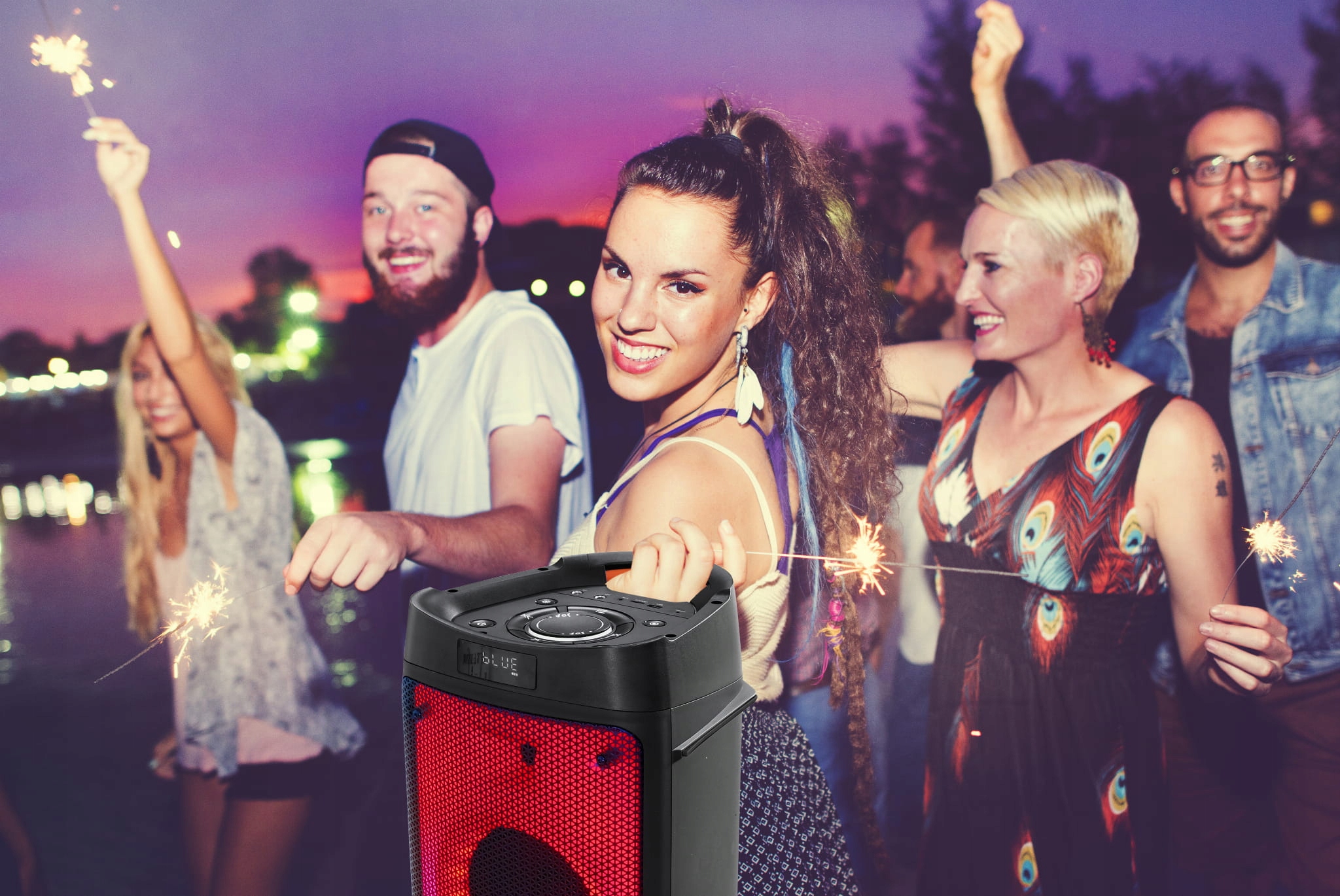 Правильная музыка, освещение и атмосфера – залог веселья и встреч с друзьями. Вечеринка в саду, вечеринка дома, небольшой танцевальный зал – качественный звук всегда создаст приятное настроение всем участникам, а правильный свет создаст романтическую или клубную атмосферу. Новейшая акустическая система PartyBox PB06DB от Blaupunkt станет идеальным инструментом для создания идеальной вечеринки для вас и ваших друзей.