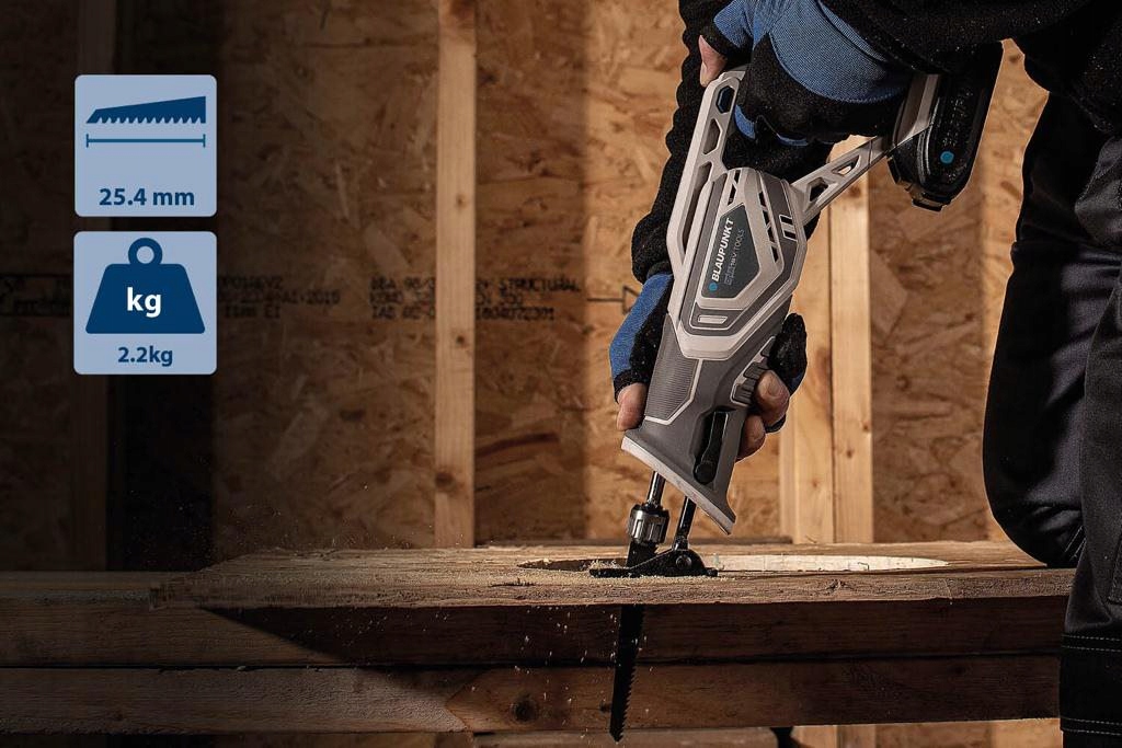 BP5218 Мощная сабельная пила с литий-ионным аккумулятором 18 В. Идеально подходит для выполнения множества задач в мастерской, гараже, на стройке, в саду и дома.