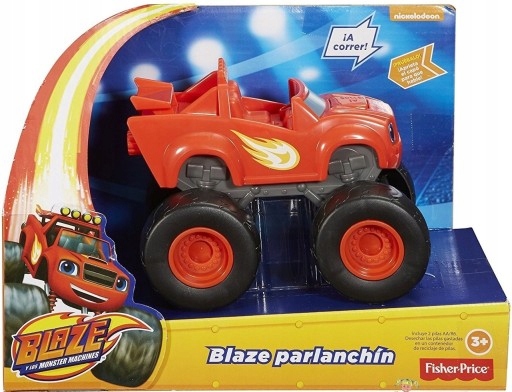 Blaze — красный монстр-трак с большими колесами и высокой подвеской. Его конструкция позволяет проводить сумасшедшие гонки в опасных условиях. Игрушечная машинка Blaze от Fisher Price — это большой автомобиль с открытой крышей и толстыми черными шинами. Это интерактивная игрушка, запрограммированная более чем 25 звуками и фразами из мультсериала на испанском языке. Включаем их с помощью красной кнопки на капоте машины.