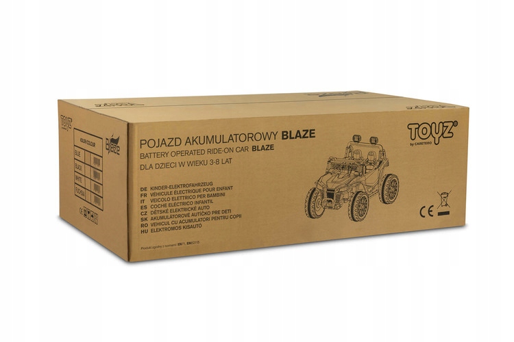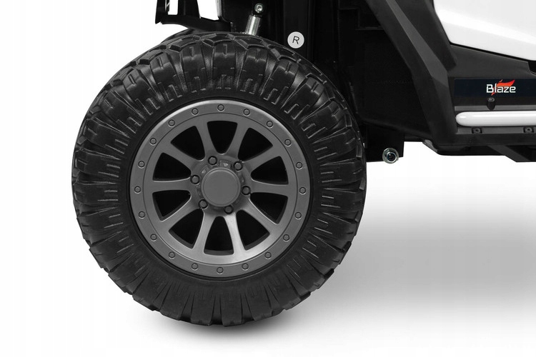 Blaze — внедорожник на аккумуляторе, который доставит массу удовольствия двоим детям. Безопасность вождения обеспечивает удобное сиденье из экокожи, оснащенное 2 комплектами 3-точечных ремней безопасности. Подвеска автомобиля дополнена четырьмя амортизаторами, которые помогут преодолевать неровности местности, что в сочетании с колесами из пены EVA гарантирует необыкновенный комфорт вождения. Blaze оснащен светодиодными фонарями, расположенными в передней части автомобиля и на балке над головами пассажиров. Реализма во время игры добавят такие элементы, как открывающаяся дверь с ручкой, подъемный капот и открытый багажник в задней части автомобиля. Blaze оснащен четырьмя двигателями мощностью 45 Вт и одной батареей емкостью 12 В, 10 Ач. Родители маленьких детей могут удаленно управлять автомобилем с помощью прилагаемого беспроводного контроллера. Играть с Blaze станет приятнее благодаря мультимедийной панели с USB и Bluetooth.