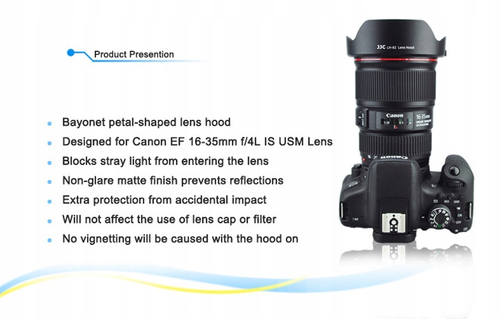 Бленда JJC EW-82 Совместима с объективами: CANON EF 16-35mm f/4L IS USM
