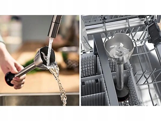 Работать с блендером теперь станет еще приятнее. Смесительную головку и другие аксессуары (кроме блока двигателя/крышки измельчителя) можно легко мыть в посудомоечной машине. Просто промойте аксессуары от крупных остатков пищи, поместите их в посудомоечную машину и... кроме