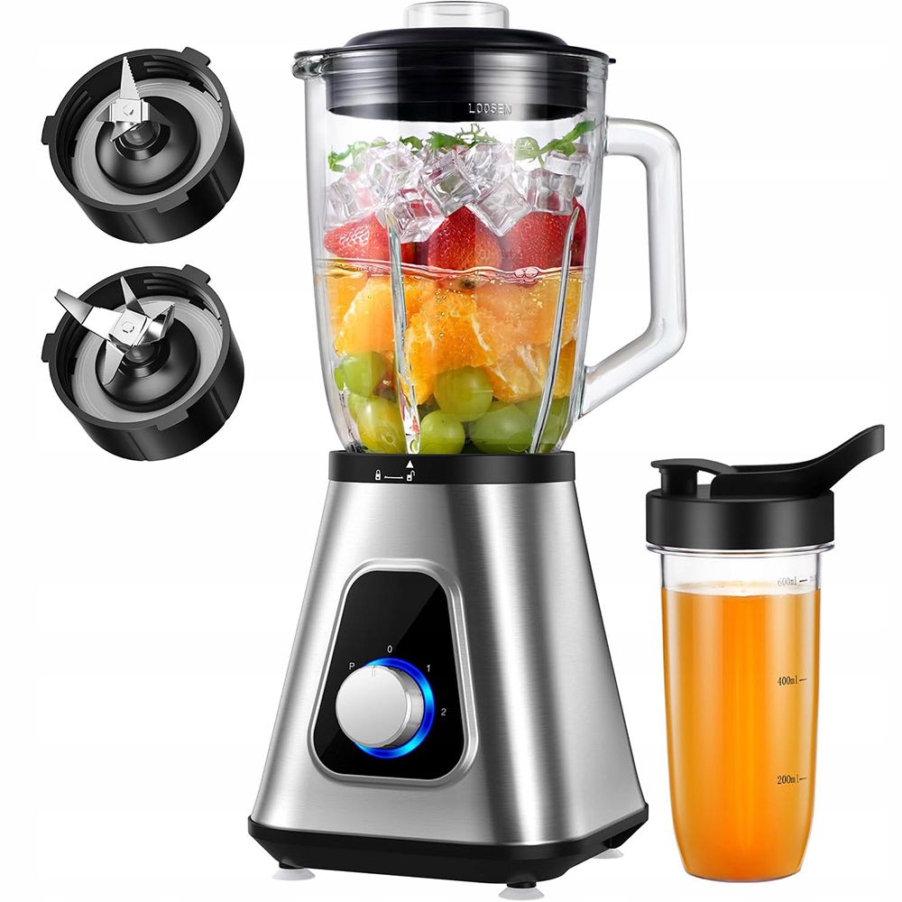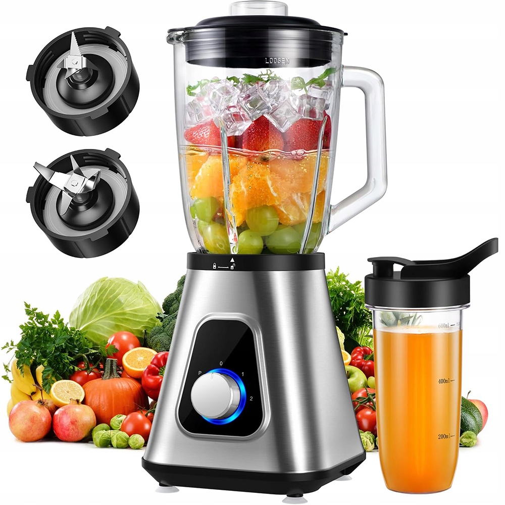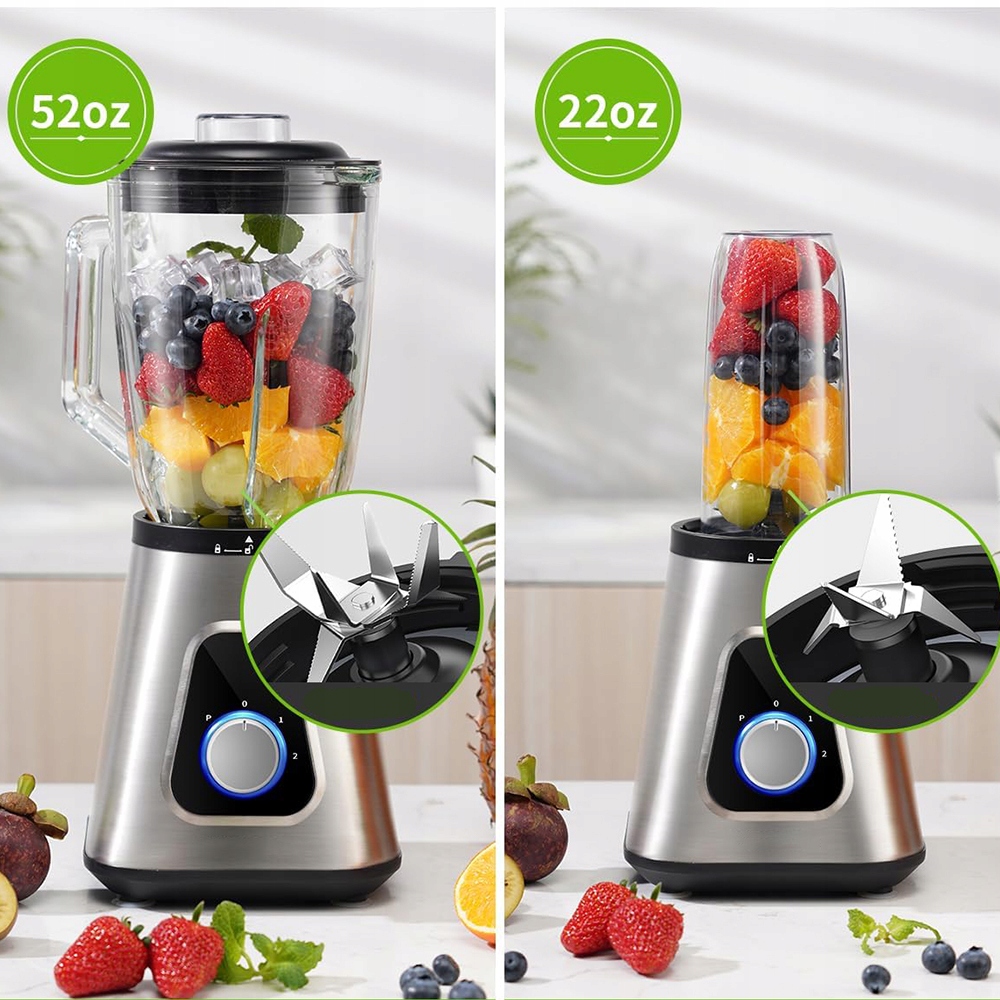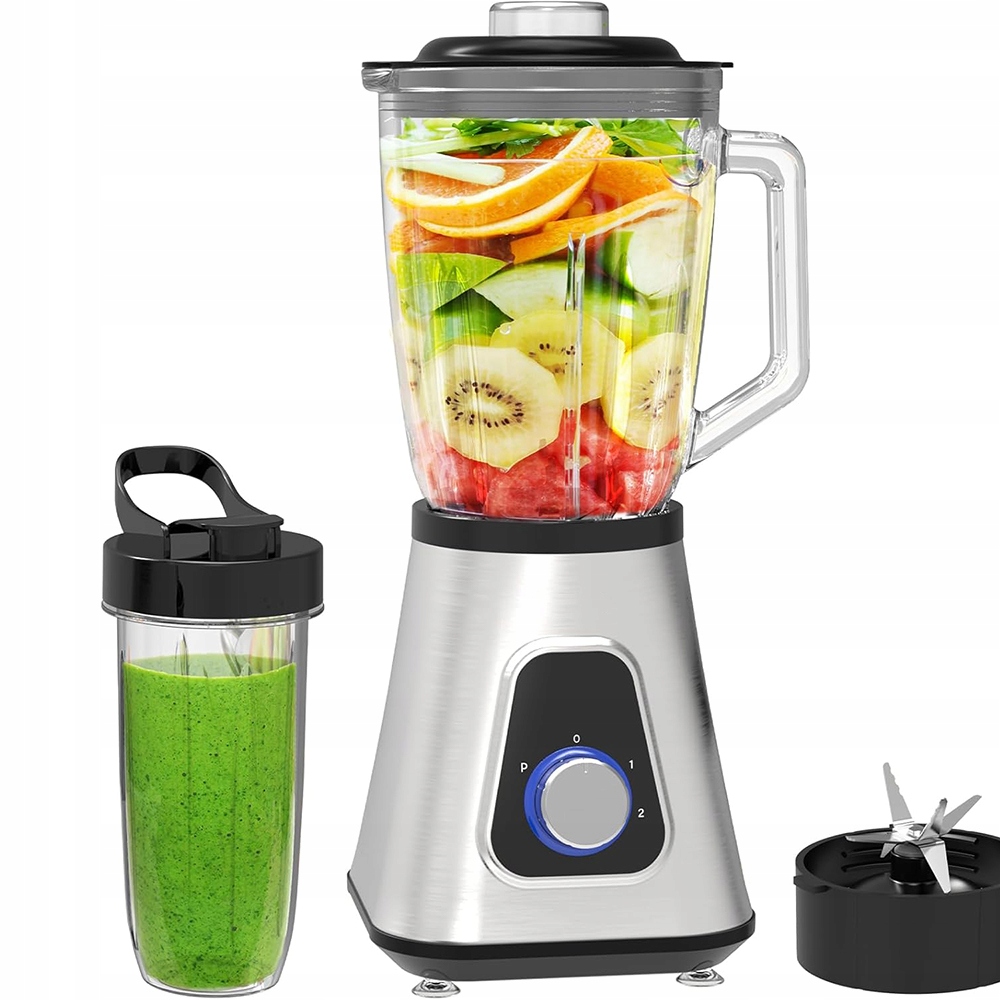 - ✨ Оснащенный мощным двигателем мощностью 1300 Вт и лезвиями из нержавеющей стали, он быстро и эффективно измельчает лед и замороженные фрукты, легко готовя соки, смузи и молочные коктейли.