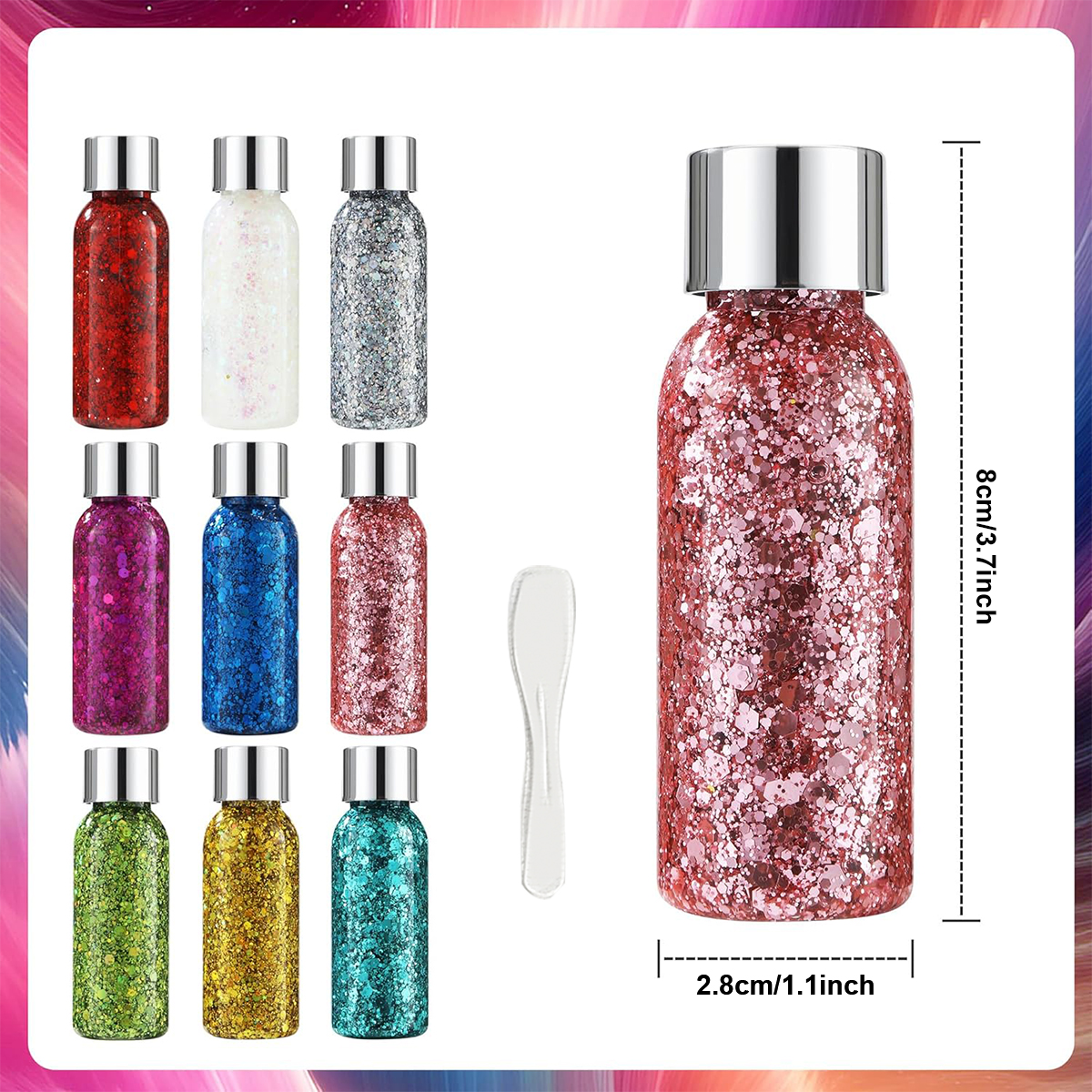✨Безопасность и высокое качество: наш гель с блестками изготовлен из безопасных, нетоксичных материалов, подходит для детей и всех типов кожи. Наслаждайтесь длительным блеском, сильной адгезией и устойчивостью к воде и поту - без шелушения.