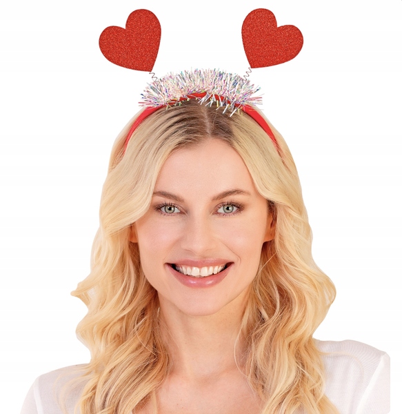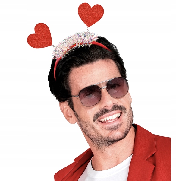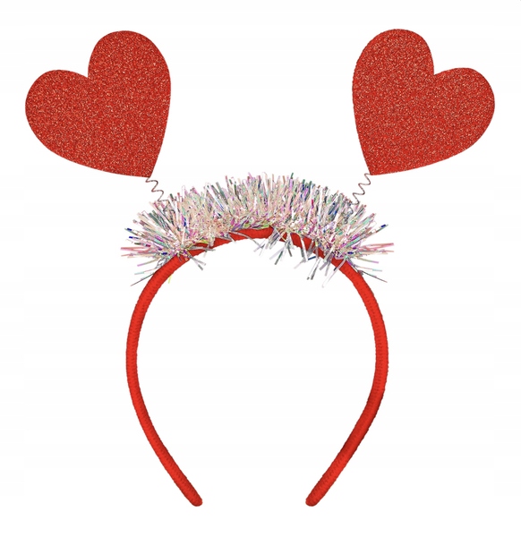 Повязка на голову с двумя красными сердечками на пружинах, покрытых блестками, - отличный аксессуар, который создаст романтическую и веселую атмосферу. Украшен голографической бахромой, идеально подходит для Дня святого Валентина, свидания или тематической вечеринки.