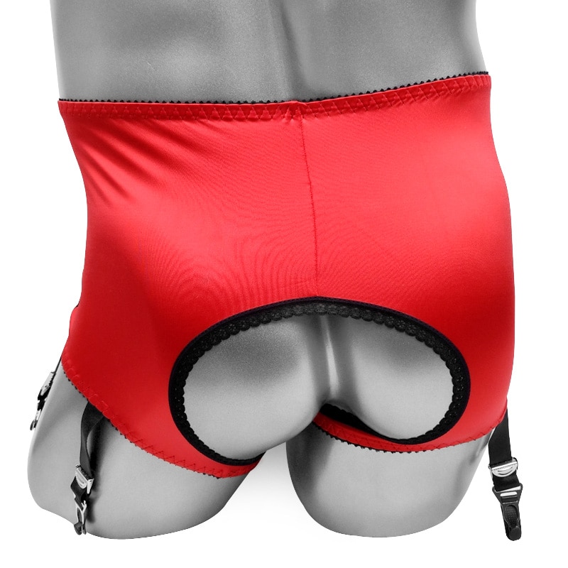 Блестящие мужские боксеры с подвязками, красный пояс