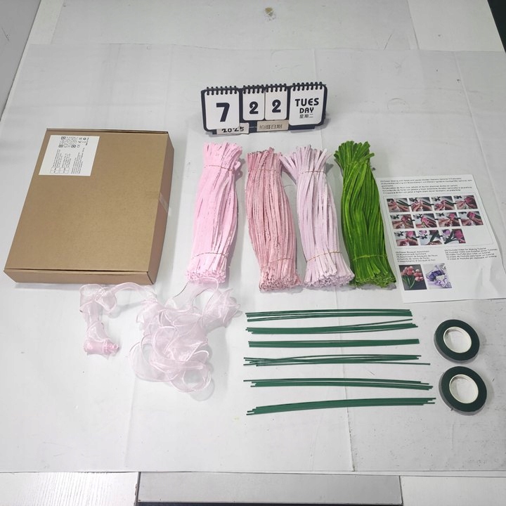 - - Набор содержит 300 розовых (от темного до света) провода с мехом, 100 зелеными проводами с мехом, 30 проводов зеленого железа, 1 зелень, 1 зелень, присутствующий, 2 ролика с клейкой лентой и инструкции (инструкции представлены только одним производственным планом, вы также можете ознакомиться с другими планами).