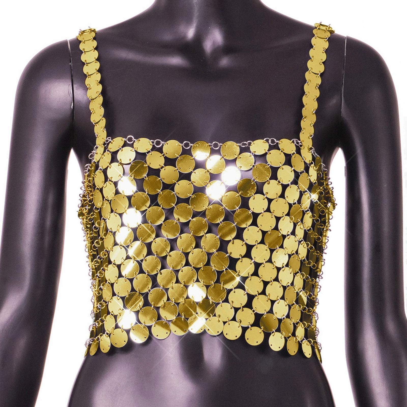 [Tops Sequin]: Sequin -back жилет, блестящие и блестящие цепи тела, модные и свободные, показывающие ваши очаровательные кривые.