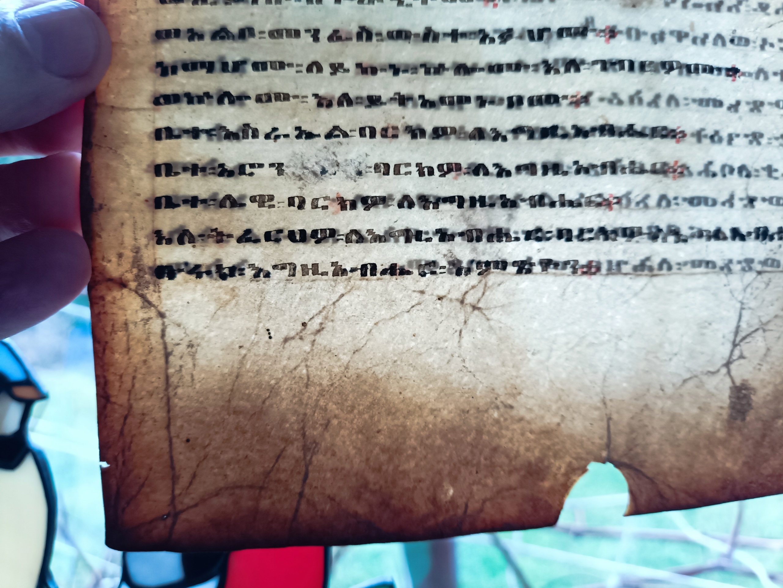 Очень интересный экзотический редкость для библистов, потому что на этом языке известна одна из самых старых записей старого и Нового Завета. Ранние переводы Библии в Geez датируются как минимум к 6 -м веку, что делает их одним из старейших переводов Библии в мире.