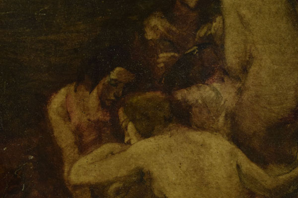 Около 1900 года, по словам Оскара Ларсена, окрашенного в печать. h1> Старый изображение печати на доске. Изображение представляет группу из четырех обнаженных и наполовину разложенных форм - в жесткой, интимной композиции. Это мифологическая или аллегорическая сцена, возможно, связанная с ритуалом, чувственностью или духовностью. Это копия изображения Оскара Ларсена. H2>