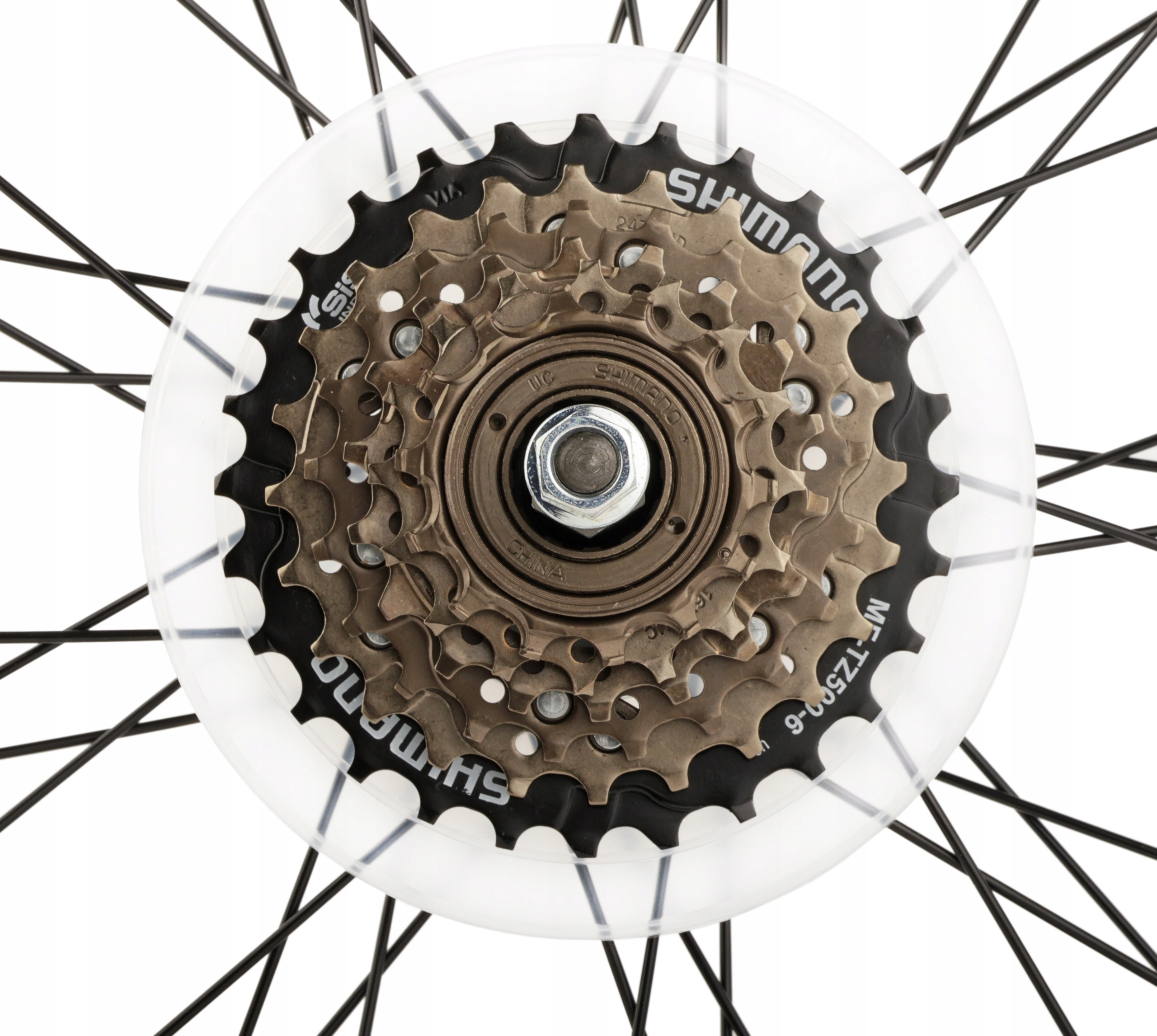 Circle 26 '' Звездный круг задний алюминиевый черный + свободный вель 6z + цепь конического обода, изготовленная из алюминия, имеет 36 спиц в черном. Пиаст на подшипниках мяча известной авторитетной компании Joytech. Набор также включает в себя свободный ход с выстрелом shimano 6- в порядке из стали, а цепь KMC Z50 с 116 ссылками . Цепь совместима с этим набором.