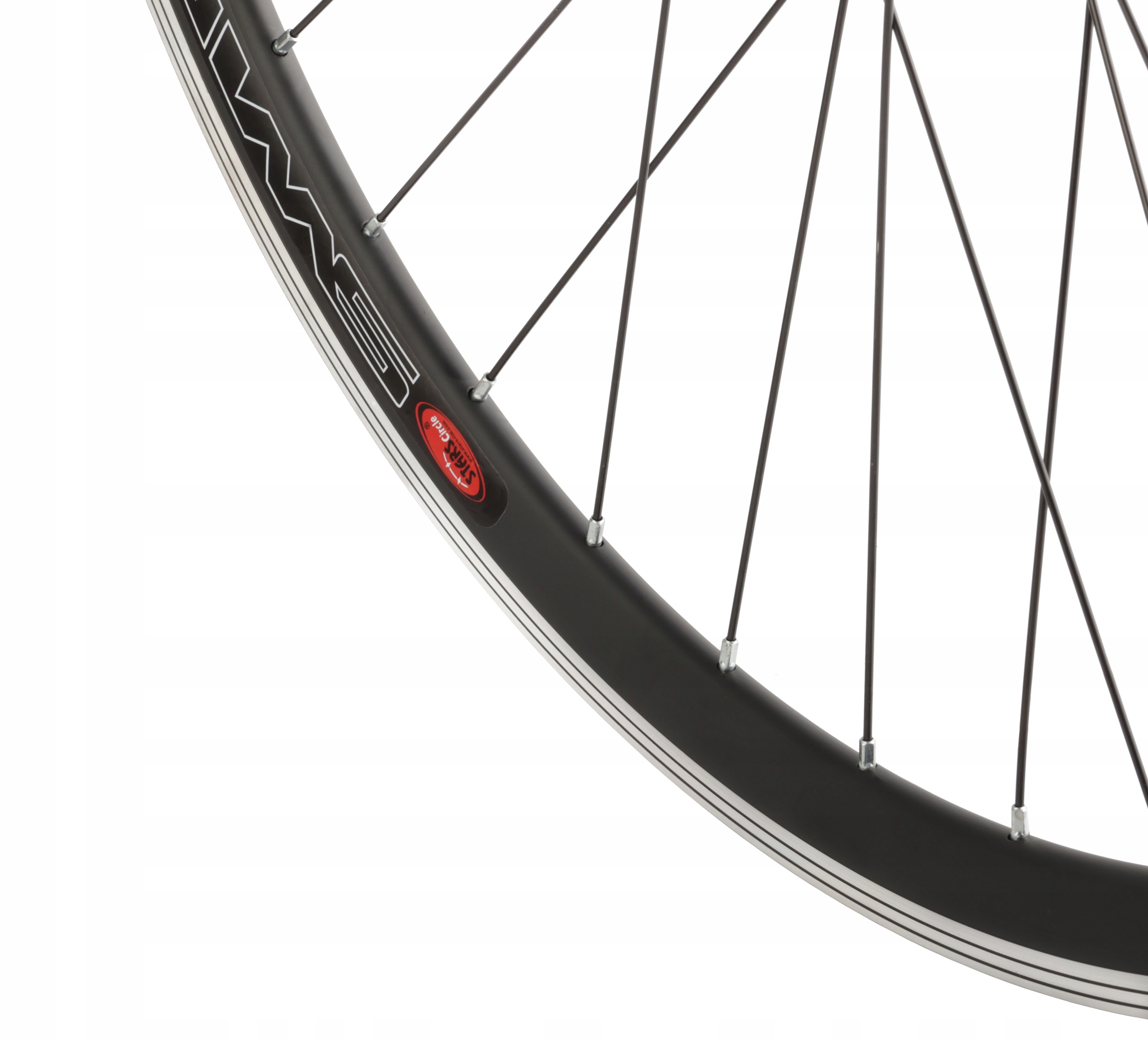 переднее велосипедное колесо размером 28 "Звездного круга . Свет, двухборный обод, сделанный из алюминия, имеет 36 оцинкованных спиц. Черный адаптирован для дискового тормоза с креплением 6 -сиа.