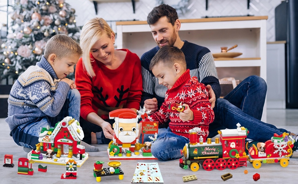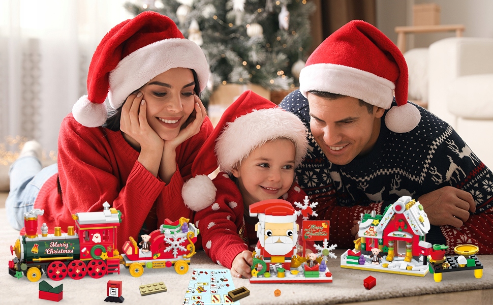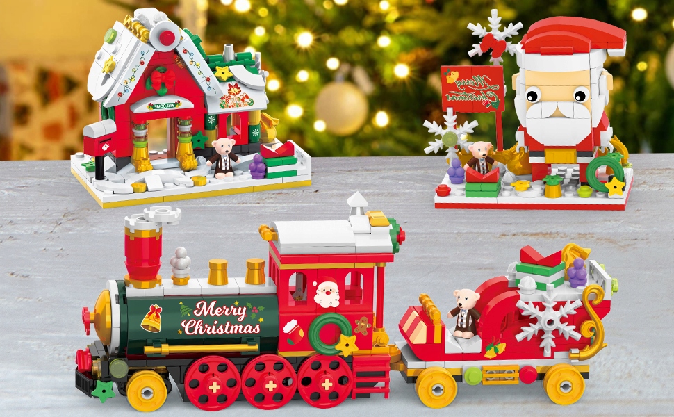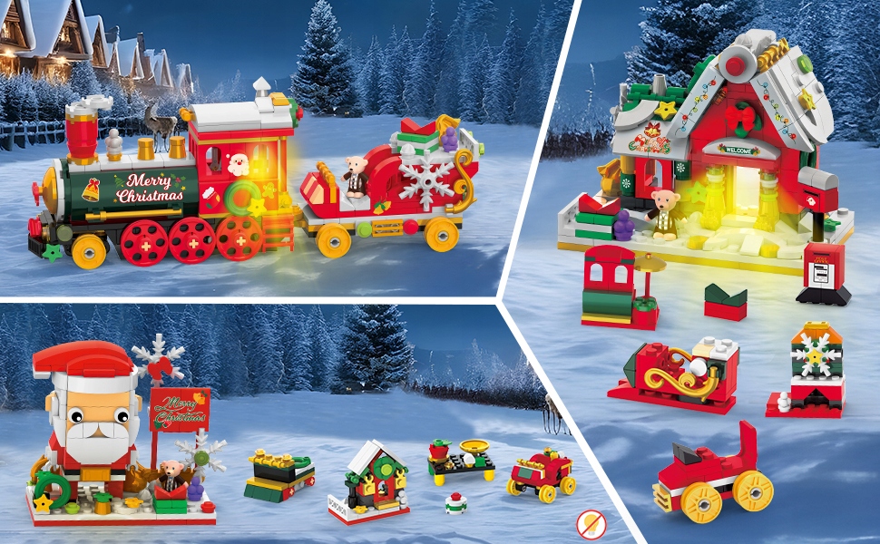 - ❤️Наш рождественский мини-конструктор 3-в-1 воплотит в жизнь все фантазии ваших детей о Санта-Клаусе, рождественском поезде и рождественском домике. одновременно.