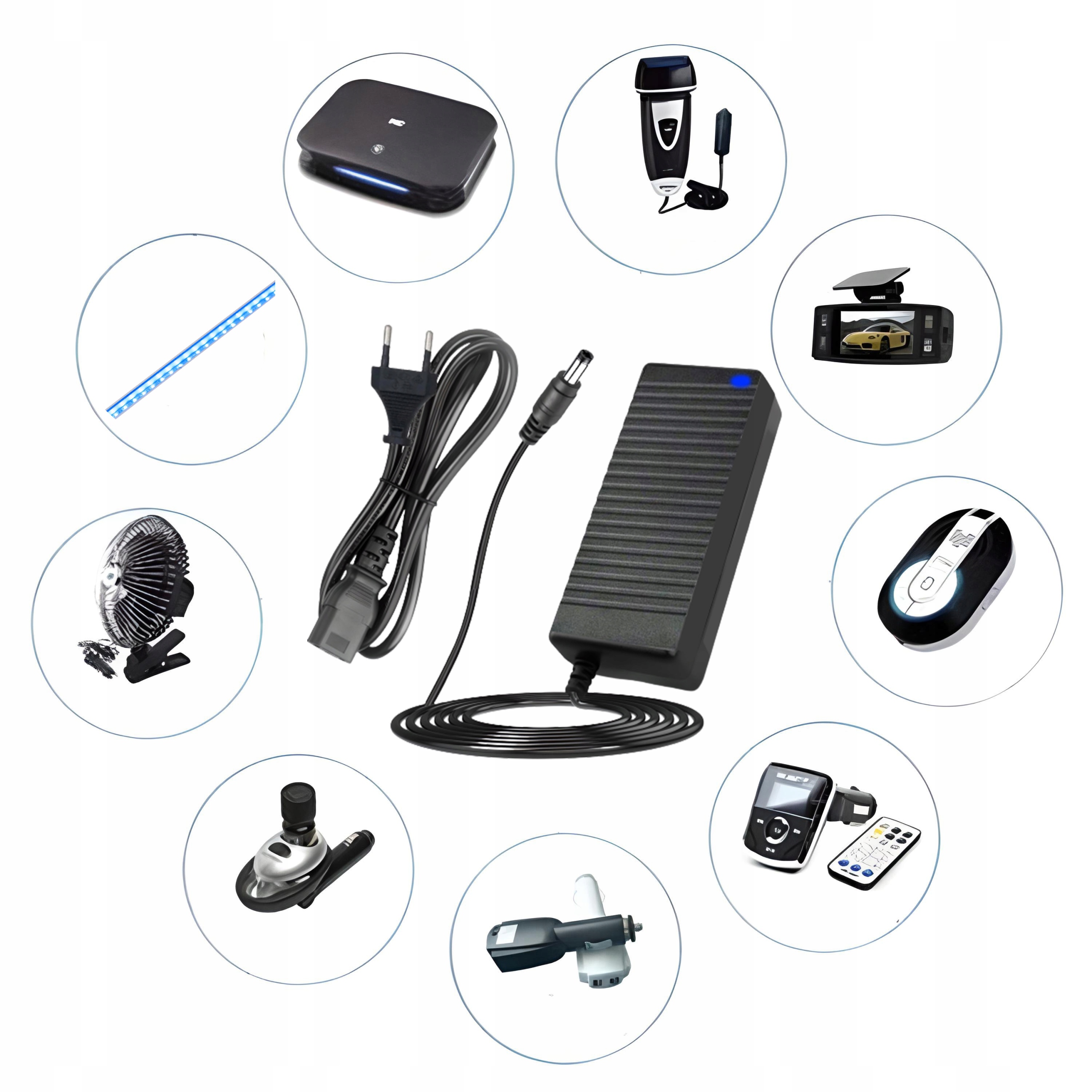 Блок питания постоянного тока с входом 2,1 x 5,5 мм идеально подходит для RGB-лент и других устройств с входом 2,1 x 5,5 мм. Он будет работать не только во время отпуска, но и при повседневном использовании. Подходит для утюгов, светодиодных лент RGB, фенов, бритв и других устройств с входом постоянного тока 2,1 x 5,5 мм.