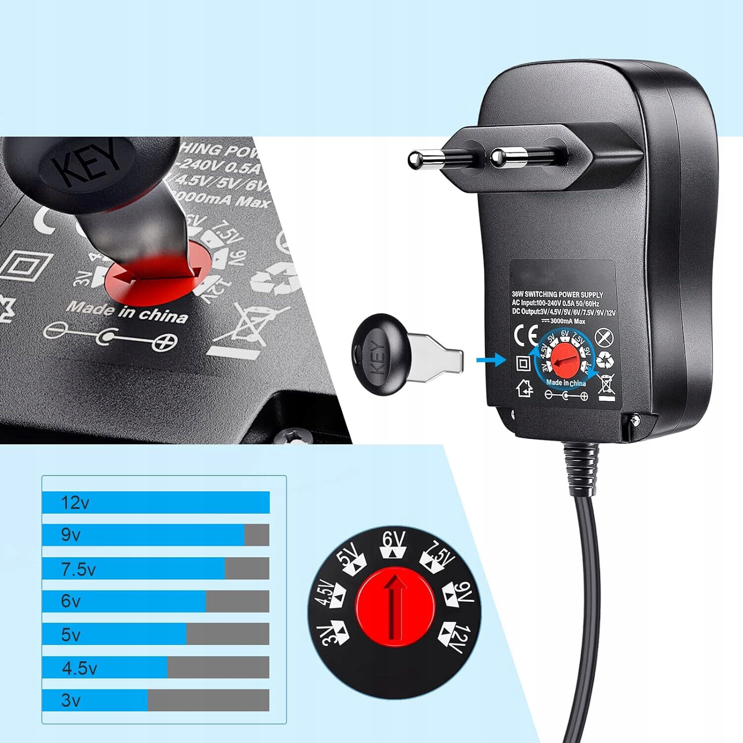 ✔️✔️ Универсальный источник питания переменного/постоянного тока: Вход переменного тока: 100-240 В, выход постоянного тока: 3 В/4,5 В/5 В/6 В/7,5 В/9 В/12 В. Передовая, безопасная технология, с полной защитой от перенапряжения/перегрузки по току/короткого замыкания/перегрева.