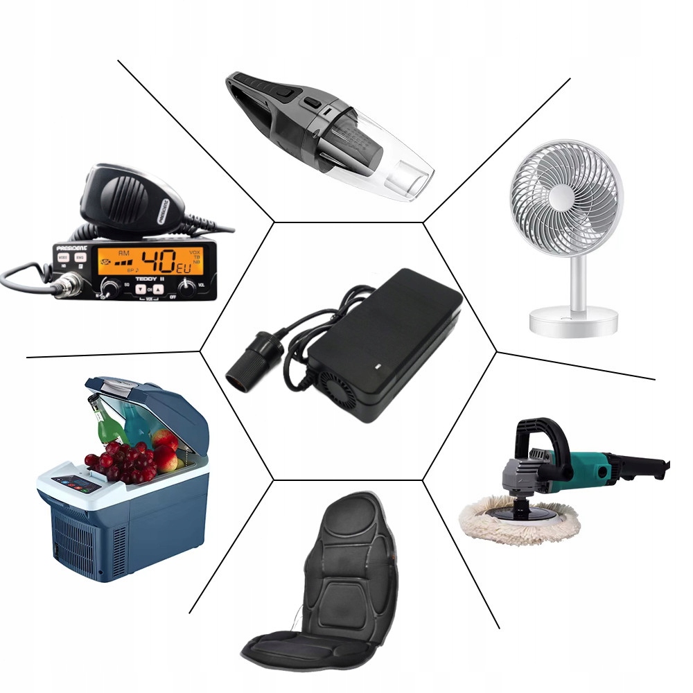 Наш блок питания имеет реальные параметры 72Вт! Предназначен для всех устройств, питающихся от автомобильного прикуривателя, с потребляемой мощностью не более 72Вт. К таким устройствам относятся и дорожные холодильники, большинству из которых требуется мощность 60–72 Вт. Наш блок питания способен работать с таким холодильником без его полного использования (с так называемым запасом мощности), что делает его стабильным и безопасным решением.