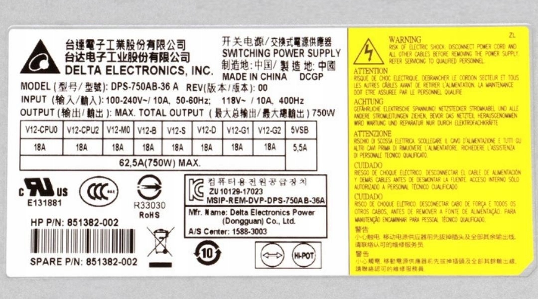 Блок питания 750 Вт для рабочей станции HP Z4 DPS-750AB-36 A