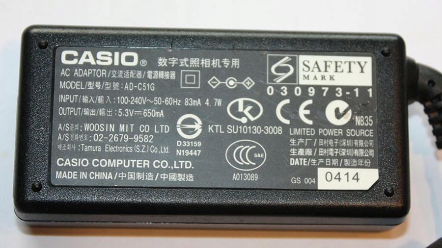 БЛОК ПИТАНИЯ CASIO AD-C51G 5,3 В 650 мА
